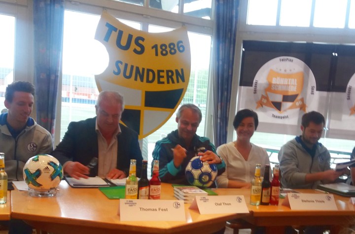 Keine Sorge, so schlimm ist es noch nicht, dass ich einen bereits geschriebenen Artikel vergesse und einfach ein weiteres Mal über die gleiche Sache berichte… Könntest du als regelmäßiger Leser nämlich denken, weil Olaf Thon gerade erst vor zwei Wochen beim TuS Sundern war, um das große, ins Sauerland geholte Revier-Derby anzukündigen (der Countdown läuft, knapp vier Wochen noch…). Nun geht es wieder um Olaf Thon, und wieder um den TuS Sundern. Aber in einem ganz anderen Zusammenhang… Wo nun die Gründe für dein vermeintliches Déjà-vu klar sind, kann´s ja los gehen: