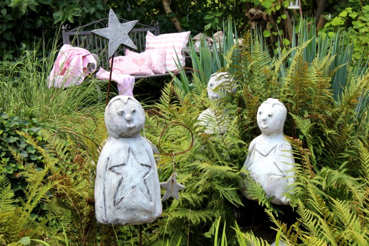 Die Kunst von Juliana Schmidt ist tatsächlich genau „mein Ding“. Ich mag dieses Märchen-, Mädchen- und Zauberhafte total, und rosa sowieso 😉 Schon in einem schnöden Museum präsentiert würden diese Exponate entsprechend auf mich wirken. In diesem traumhaften Garten allerdings machen sie den Eindruck, als würden sie gleich tatsächlich in ihrer „Märchenwelt“ zum Leben erwachen.