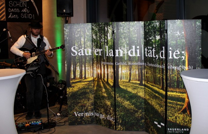 Als „Appetithäppchen“ präsentierte „Sauerland Initiativ“ einige Einzel- und Doppelseiten aus dem Buch auf Staffeleien, dazu gab’s einen „Poetry Slam“ und Livemusik mit der Band „Ampersand“.