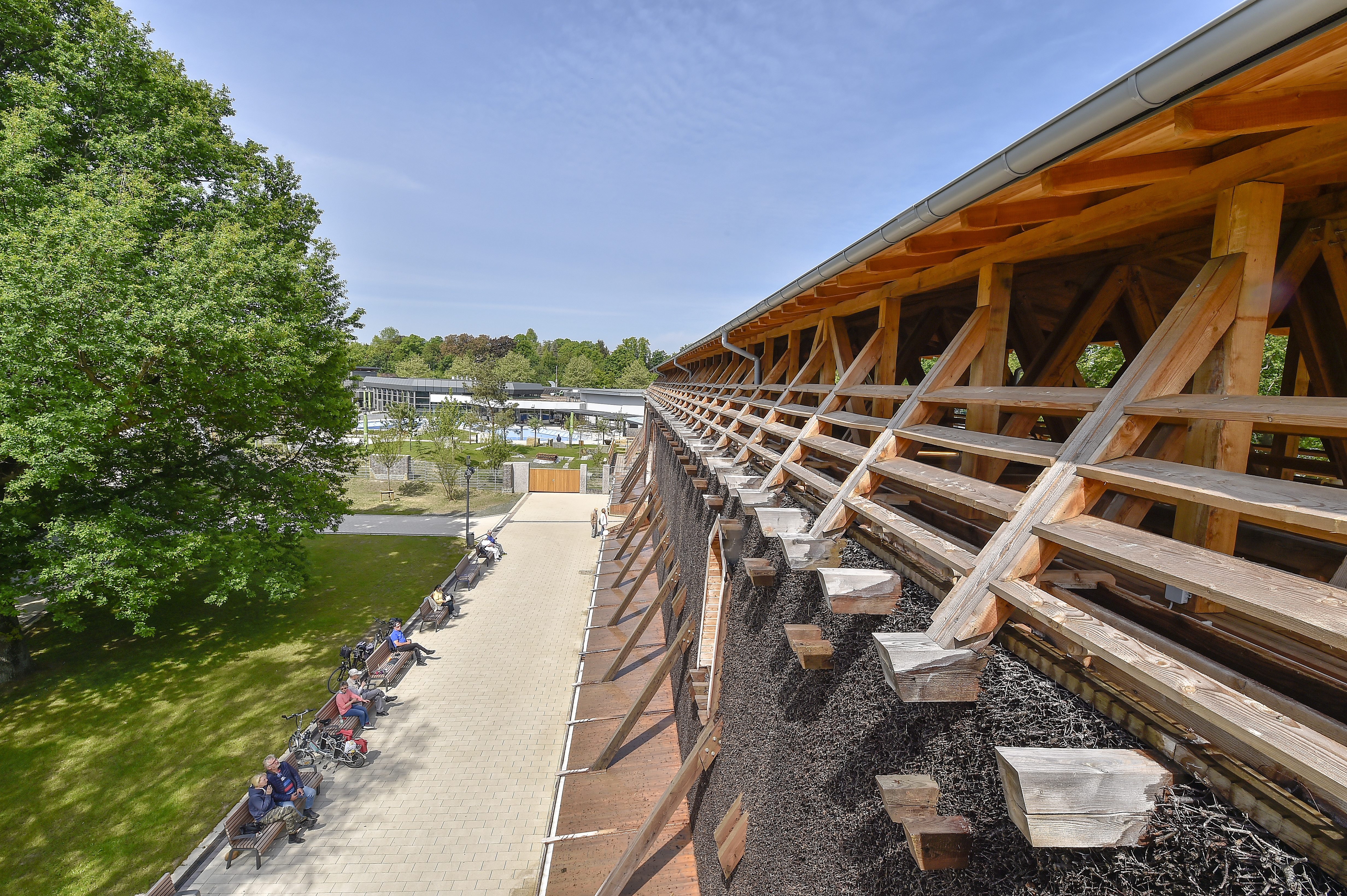 Der größte Teil aber ist öffentlich vom Kurpark aus zugänglich, und das im wahrsten Sinne: Die Anlage ist weitgehend barrierefrei; auch mit dem Aufzug geht´s auf eine Höhe von über zehn Metern, von der aus du nicht nur die Aussicht genießen, sondern auch das Wasser beim Tröpfeln beobachten kannst!