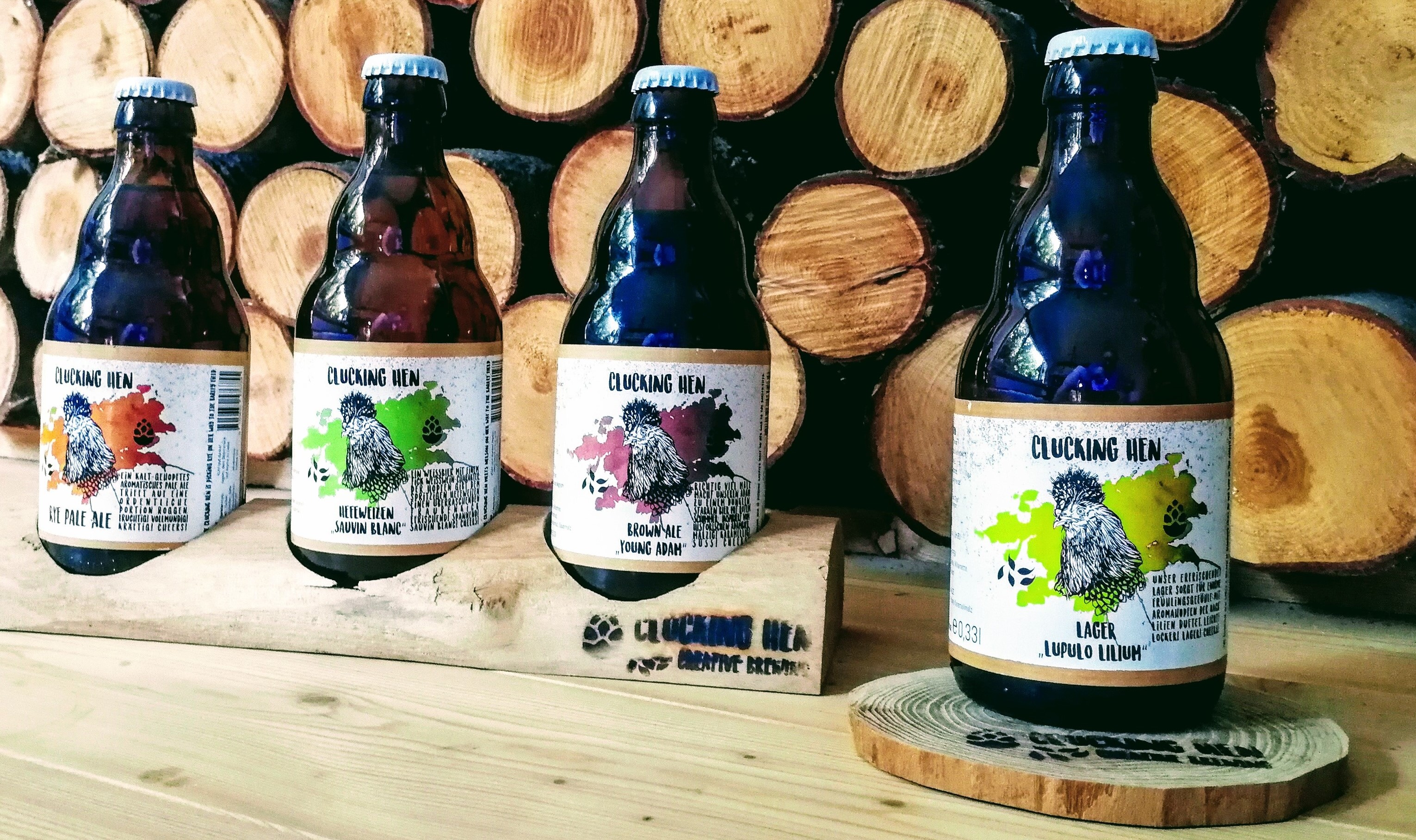 Wenn du die Vielfalt des Bieres kennenlernen möchtest, musst du nun nicht nach Belgien fahren; unsere Henne brütet ja auf der Couch… Bei einigen Verkaufsstellen in der Umgebung und im Online-Shop kannst du dich zunächst einmal durch die fünf Basis-Sorten probieren, die ständig bei der „Clucking Hen“ verfügbar sind: Das Hefeweizen „Sauvin Blanc“ zum Beispiel erinnert an den Geschmack von Trauben, das Starkbier „Brown Ale Young Adam“ an Aromen von Schokolade, Karamell und Nüssen.