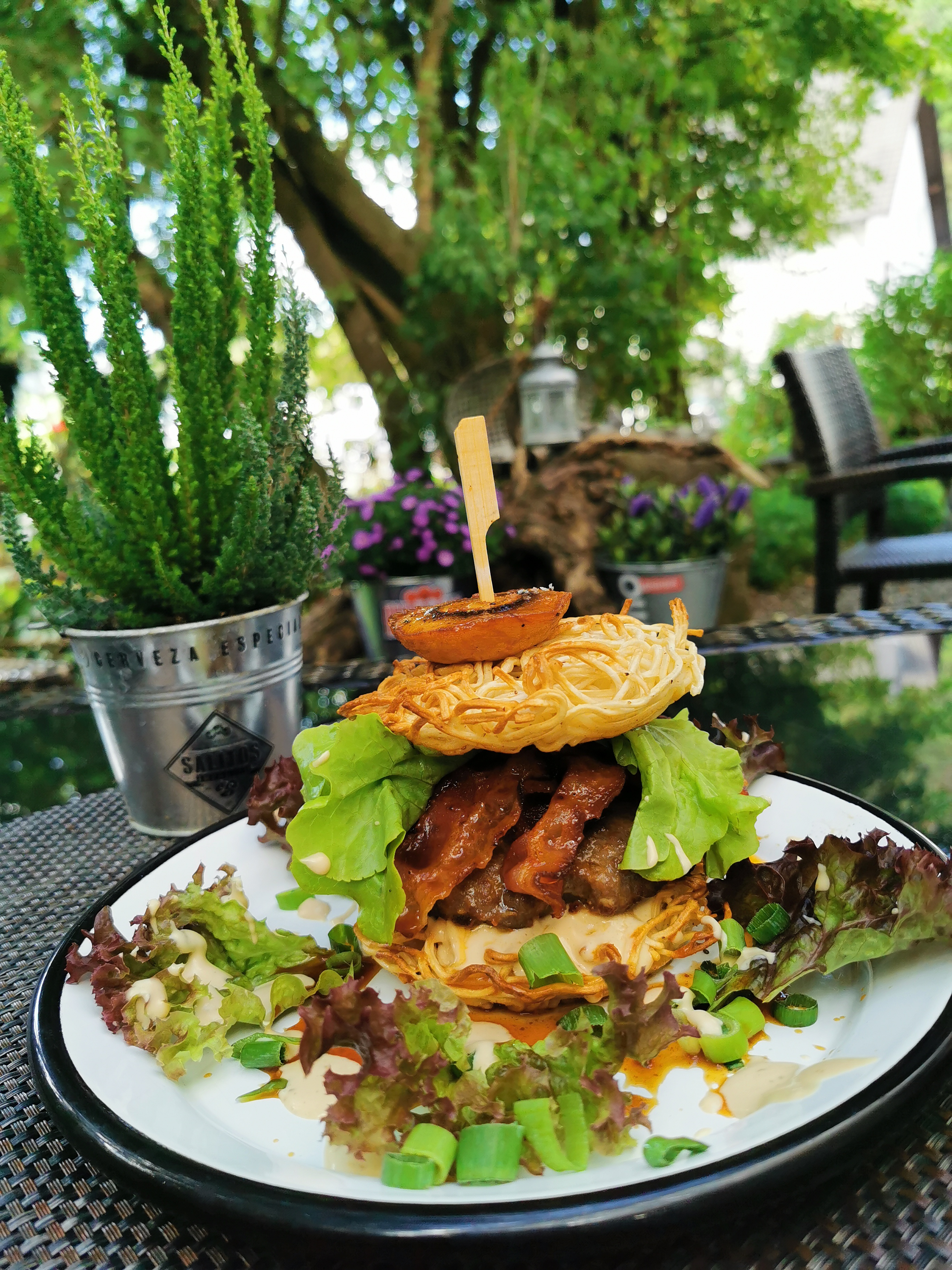 Im April betrug die Wartezeit auf einen Burger vier bis fünf Tage; der coronabedingte Außer-Haus-Verkauf war so gut angelaufen, dass die vorgegebenen Zeitfenster ständig ausgebucht waren. Inzwischen hat sich die Lage entspannt; der Außer-Haus-Verkauf geht weiter, einfach kurz durchrufen, ansonsten einfach direkt im „Needles and Pins“ genießen…