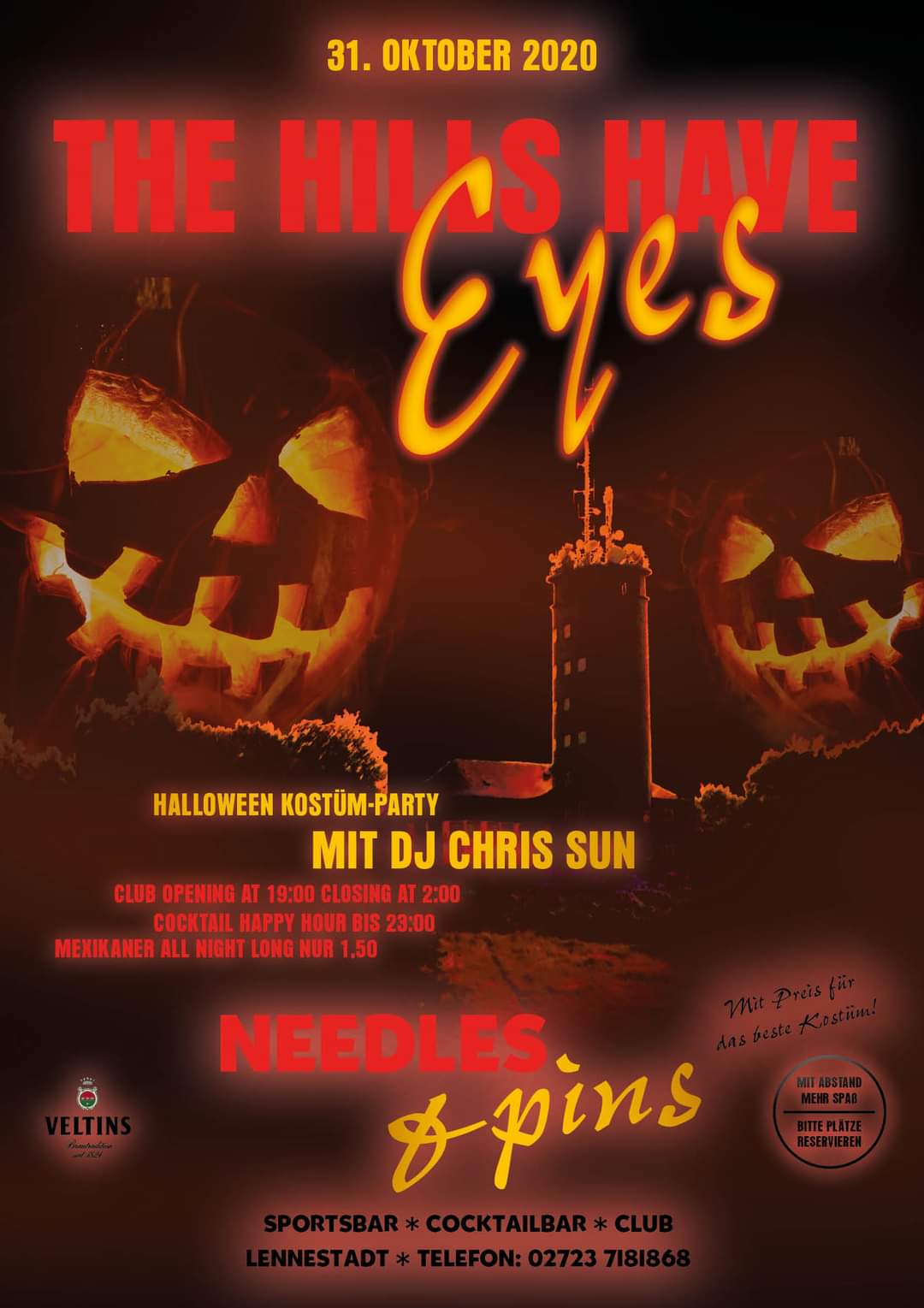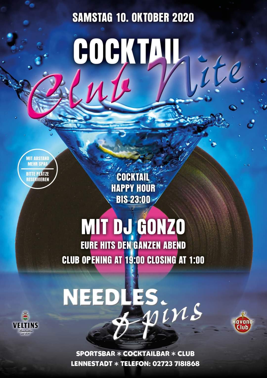Ich hatte ja schon angedeutet: Inzwischen ist es möglich, dass du etwas echte Club-Luft schnupperst. Ausgestattet mit Luftreinigern und ohnehin schon vorhandener Lüftungsanlage, einem ausgeklügelten Hygiene-Konzept und ganz viel Platz startet das „Needles and Pins“ nach wetterbedingter Schließung des Biergartens in die Club-Saison. Wenn du am kommenden Samstag bei der „Cocktail Club Nite“ dabei sein möchtest, solltest du dringend einen Tisch reservieren, stehende Gäste sind nicht erlaubt; gleiches gilt für die „The hills have eyes“-Halloween-Kostüm-Party!