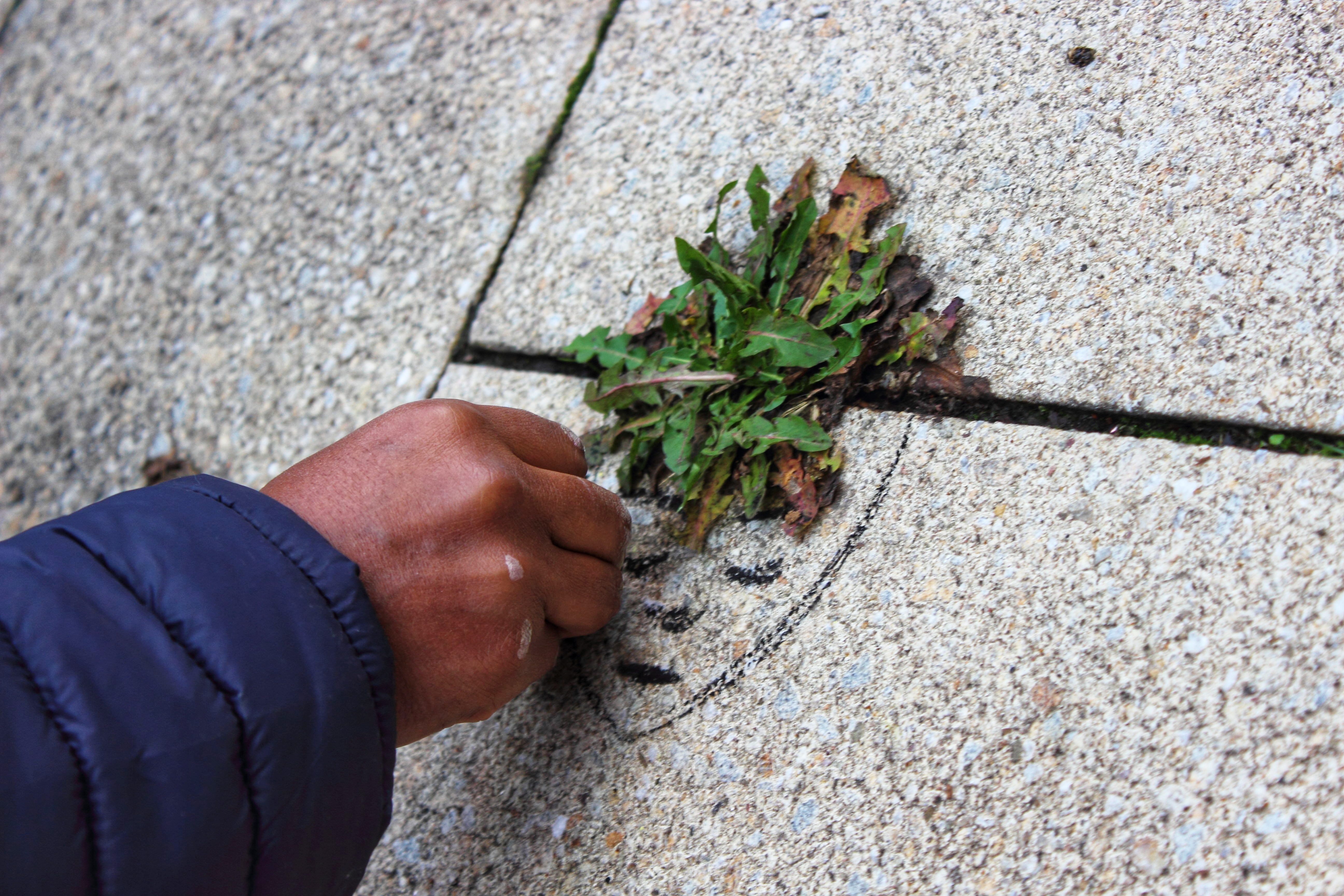 Wenn Sami Gebremariam in der Stadt unterwegs ist, sieht er nicht den grauen Beton, sondern die zahlreichen Gelegenheiten, die sich für seine „Street Art“ ergeben. Was für dich Unkraut ist, ist für Sami der Beginn eines kleines Kunstwerks, das nur wenige Kreidestriche später die Vorübergehenden erfreut.