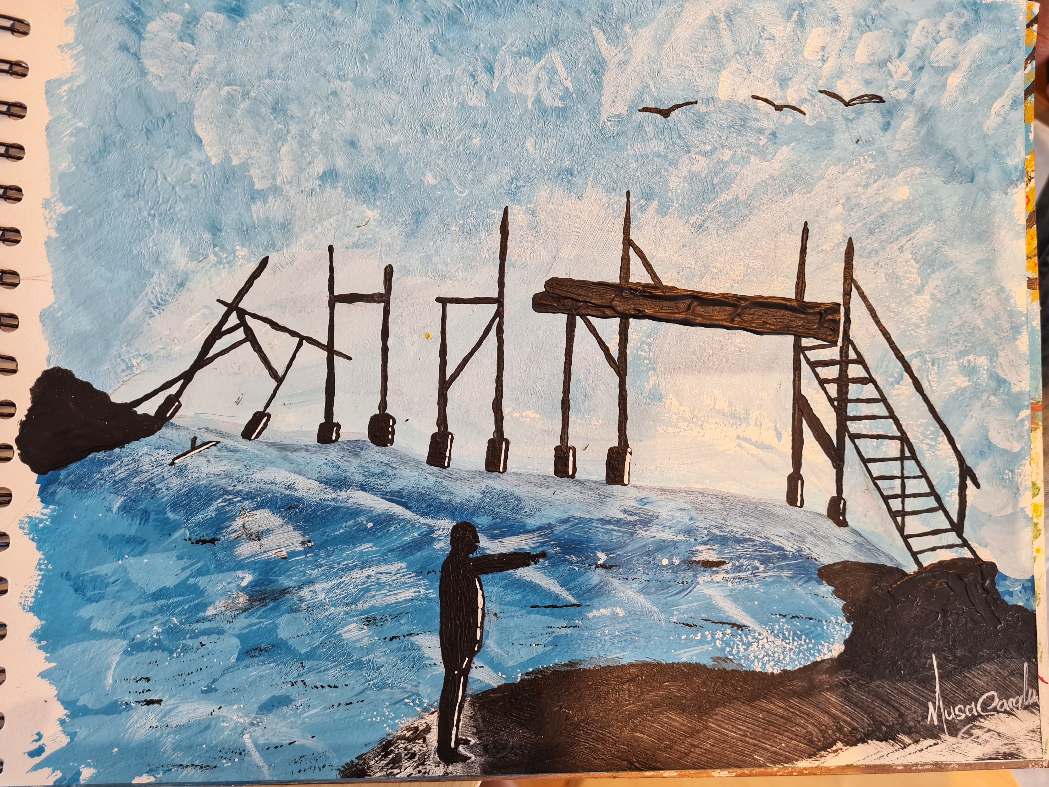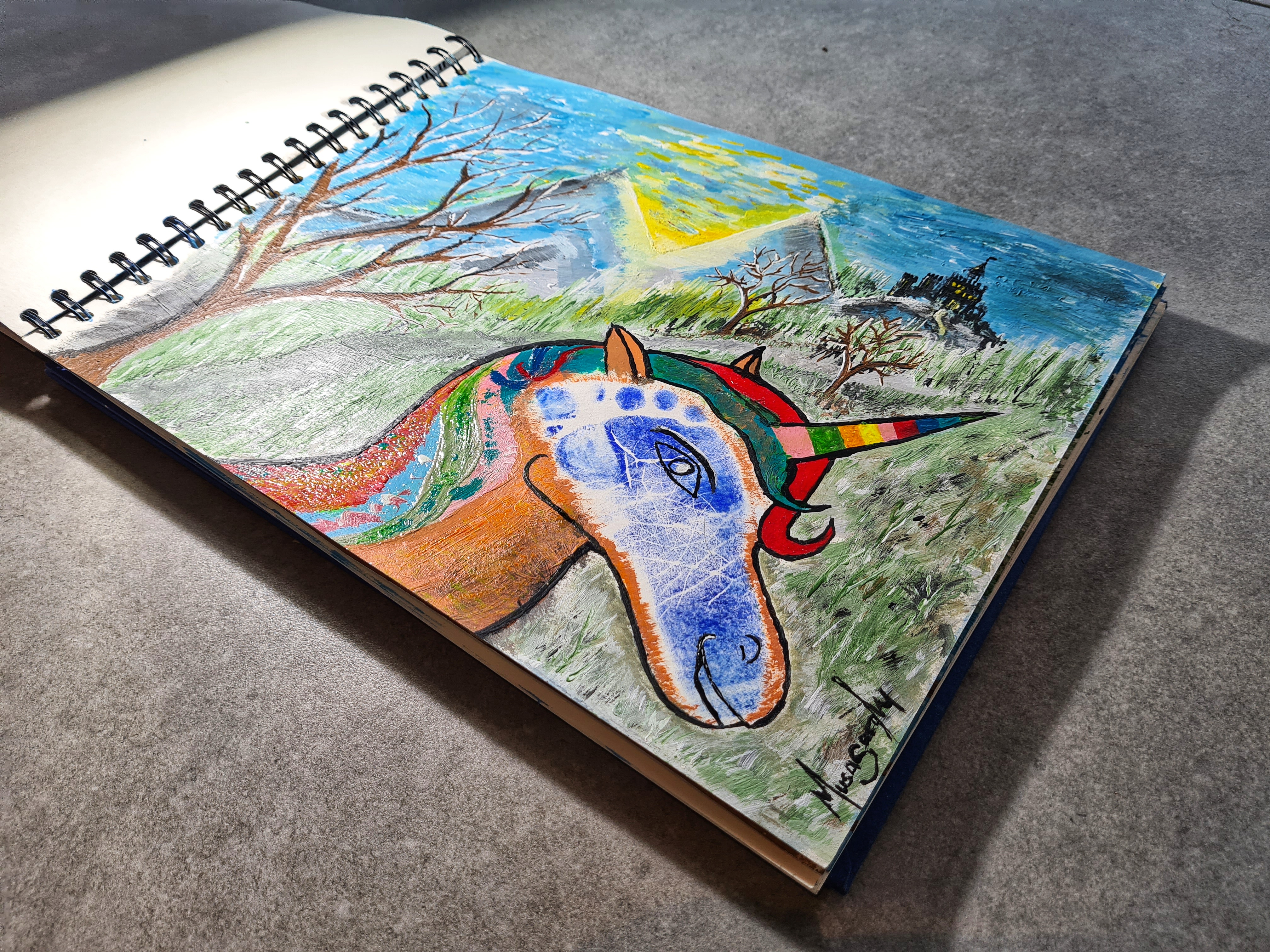 Abgeschlossen ist Musas künstlerische Entwicklung noch lange nicht, er fängt ja gerade erst wieder an. Ständig entdeckt er neue Techniken, macht sich Gedanken dazu, wie er bestimmt Effekte mit einfachen Mitteln selbst umsetzen kann.