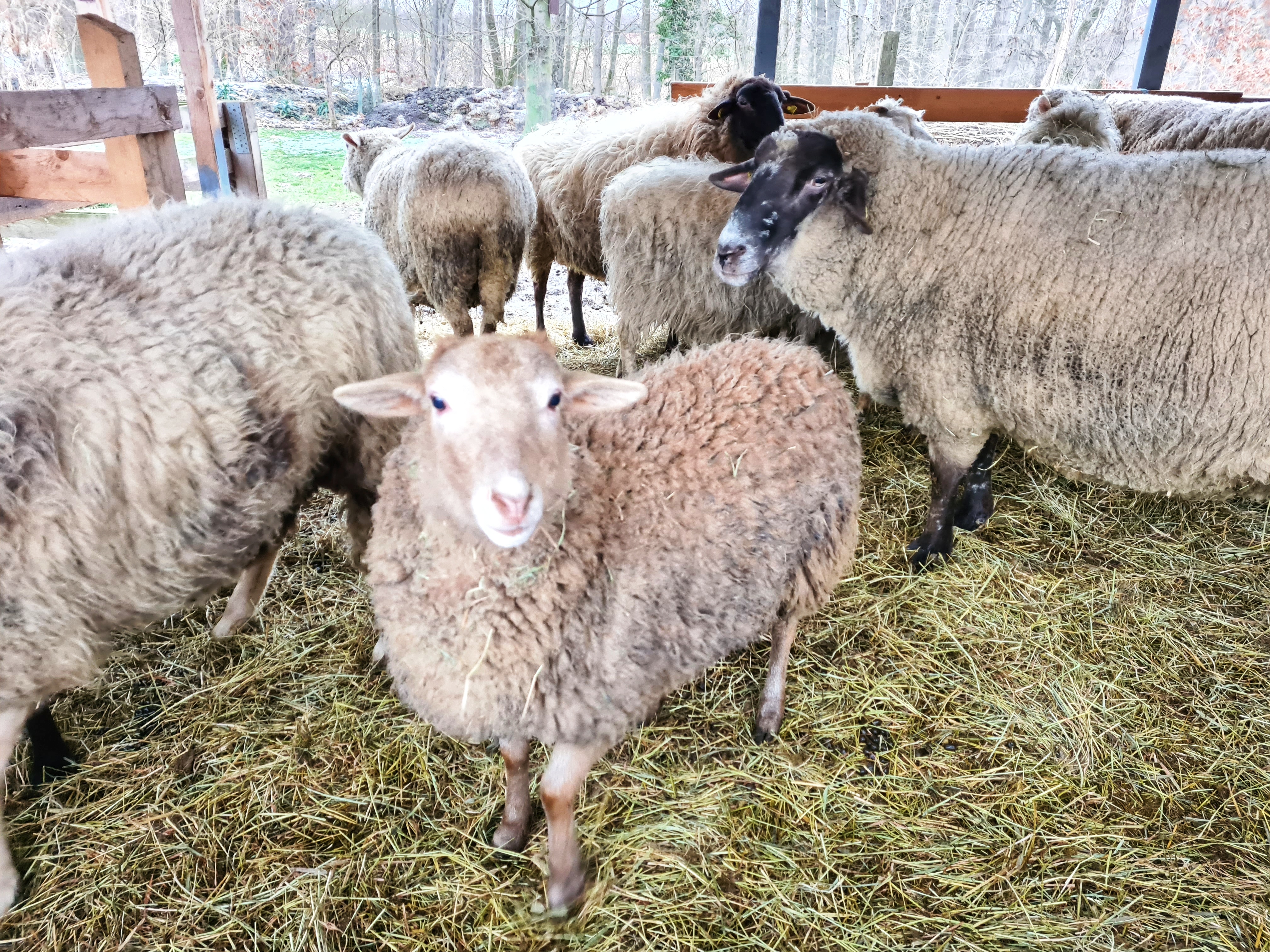 Aktuelle leben – und ich hoffe, ich vergesse Niemanden! – vierzehn Schafe, fünf Schweine, neun Meerschweinchen, vierzehn Kaninchen, neun (ehemalige Wild-)Katzen, sechs Enten, drei Puten, vier Hähne, fünfzehn Hühner, ca. 150 Tauben und ein Hund auf dem „Lebenshof für Tiere“… Jedes Tier hat seinen Namen, den Wibke Skoeries (außer bei den Tauben) natürlich kennt!
