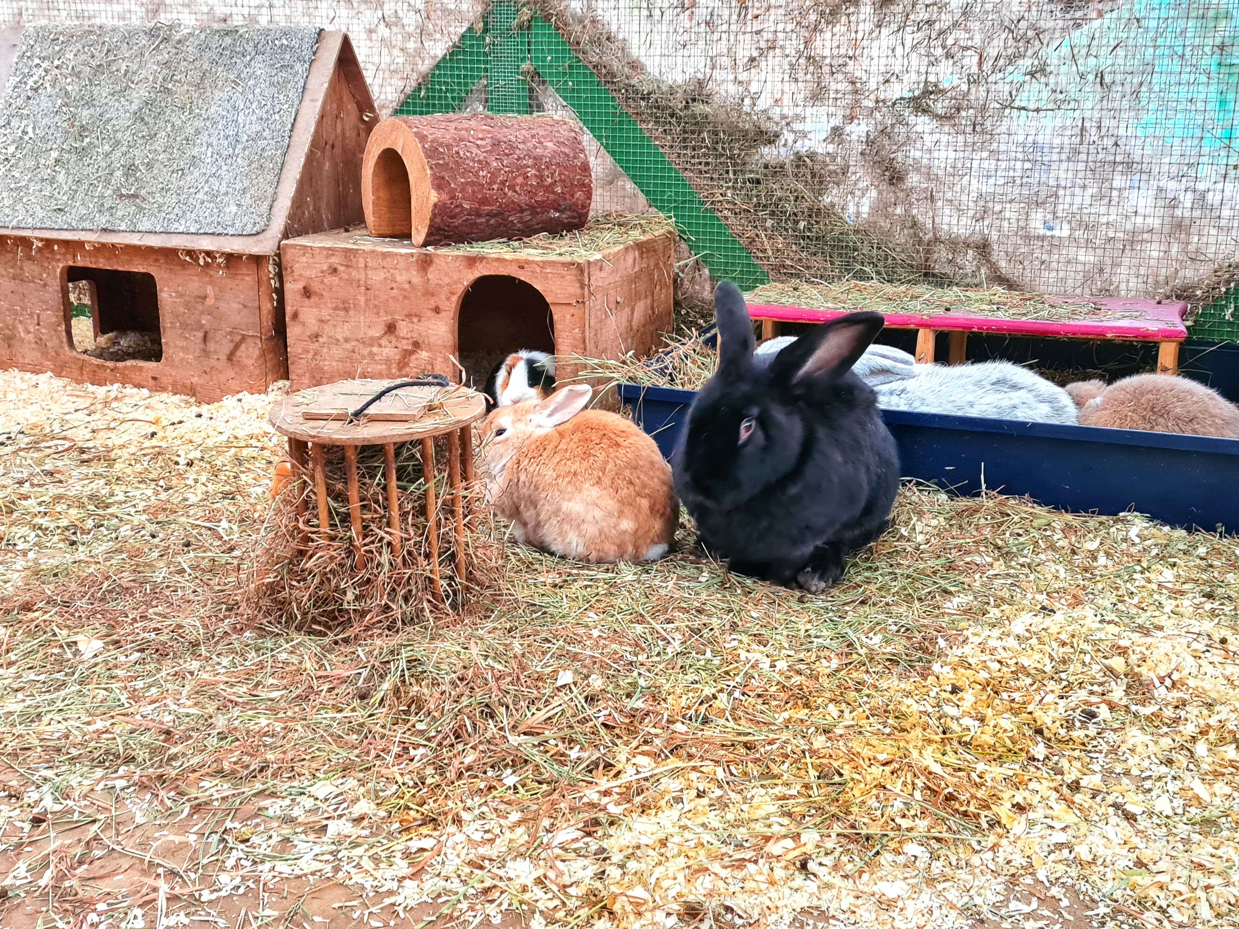 Shawn sollte nicht allein bleiben, schnell kam ein zweites Schaf hinzu, dann ein drittes Schaf – wie es weitergeht, kannst du dir bestimmt vorstellen!? Wibke Skoeries hat immer mehr Tiere aufgenommen und gerettet, manche vor dem Schlachter, manche aus schlechter Haltung; der Fokus lag von Anfang an auf Nutztieren, denn Wibke konnte es nicht verstehen, dass diese kein schönes Leben haben dürfen und für unsere Zwecke sterben müssen, während unsere Haustiere verwöhnt und liebkost werden. Und doch hatten auch kuschelige Kaninchen und Meerschweinchen aus schlechter Haltung eine Chance bei der Tierfreundin und dürfen nun friedlich in ihrem großen Gehege zusammenleben…