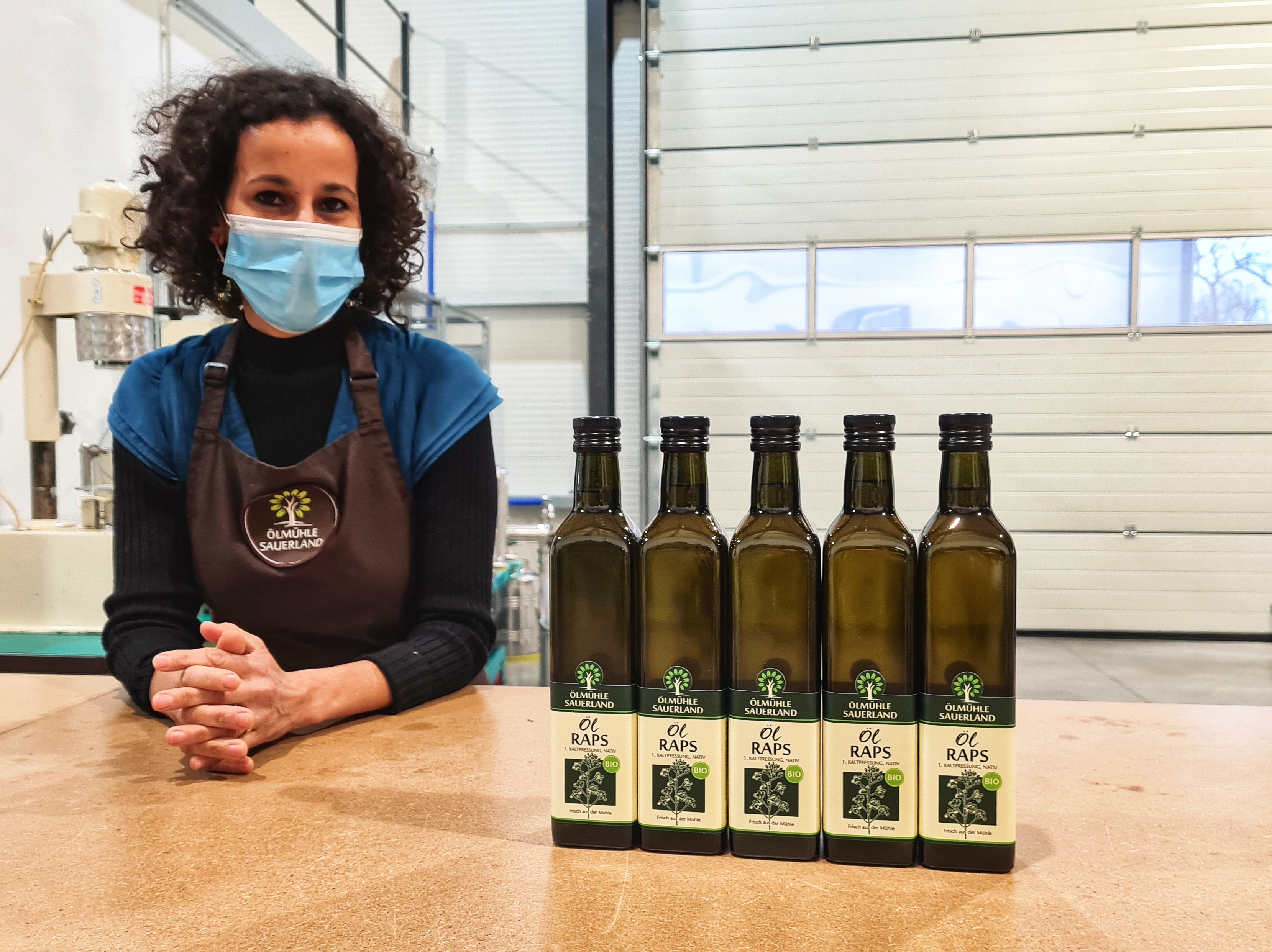 Bevor wir in die Küche gehen, müssen wir allerdings im Badezimmer starten… Denn bestimmt verbindest du den Begriff „Arganöl“ auch eher mit Kosmetik und Körperpflege als mit leckerem Essen!? Reich an Antioxidantien, mit antibakterieller, feuchtigskeitsspendender Wirkung – auch Fatima Knoff weiß diese natürliche Kostbarkeit zu schätzen: Für sie ist es Heimat, denn nur in Marokko wachsen die entsprechenden Arganbäume; für sie ist es aber auch Überzeugung, denn sie kennt die vielfältigen Einsatzmöglichkeiten des flüssigen Goldes. Schon seit fünfzehn Jahren importiert sie gemeinsam mit Ehemann Alexander Knoff pflegende Hautöle; Ende 2017 wendeten sich die Beiden dann dem Speiseöl zu und gründeten in Iserlohn die „Ölmühle Sauerland“, um auch regionalen Saaten eine Chance zu geben.