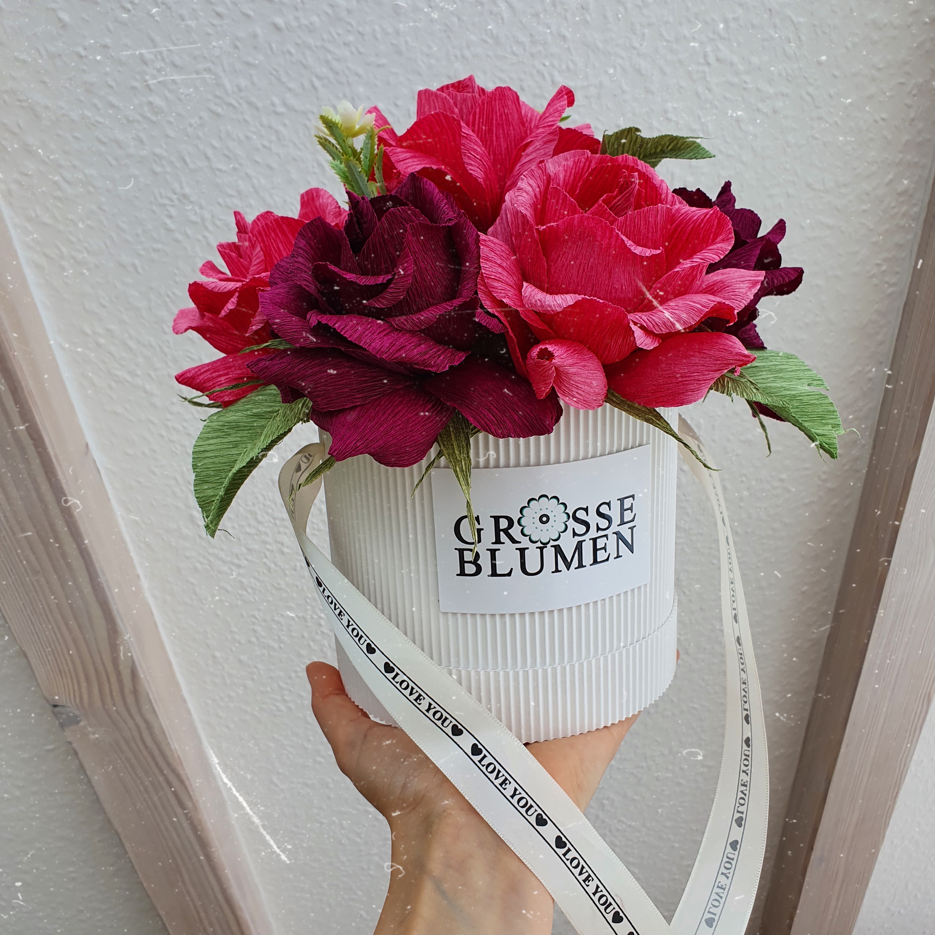 Weil es natürlich einige Zeit in Anspruch nimmt, so ein Arrangement zu basteln, hat Polina immer einen gewissen Vorrat auf Lager, den du dir bei Instagram oder auf ihrer Homepage anschauen kannst. Wenn du etwas mehr Vorlauf hast, erfüllt sie auch individuelle Wünsche – der nächste Muttertag (oder Geburtstag oder Hochzeit oder…) kommt bestimmt!