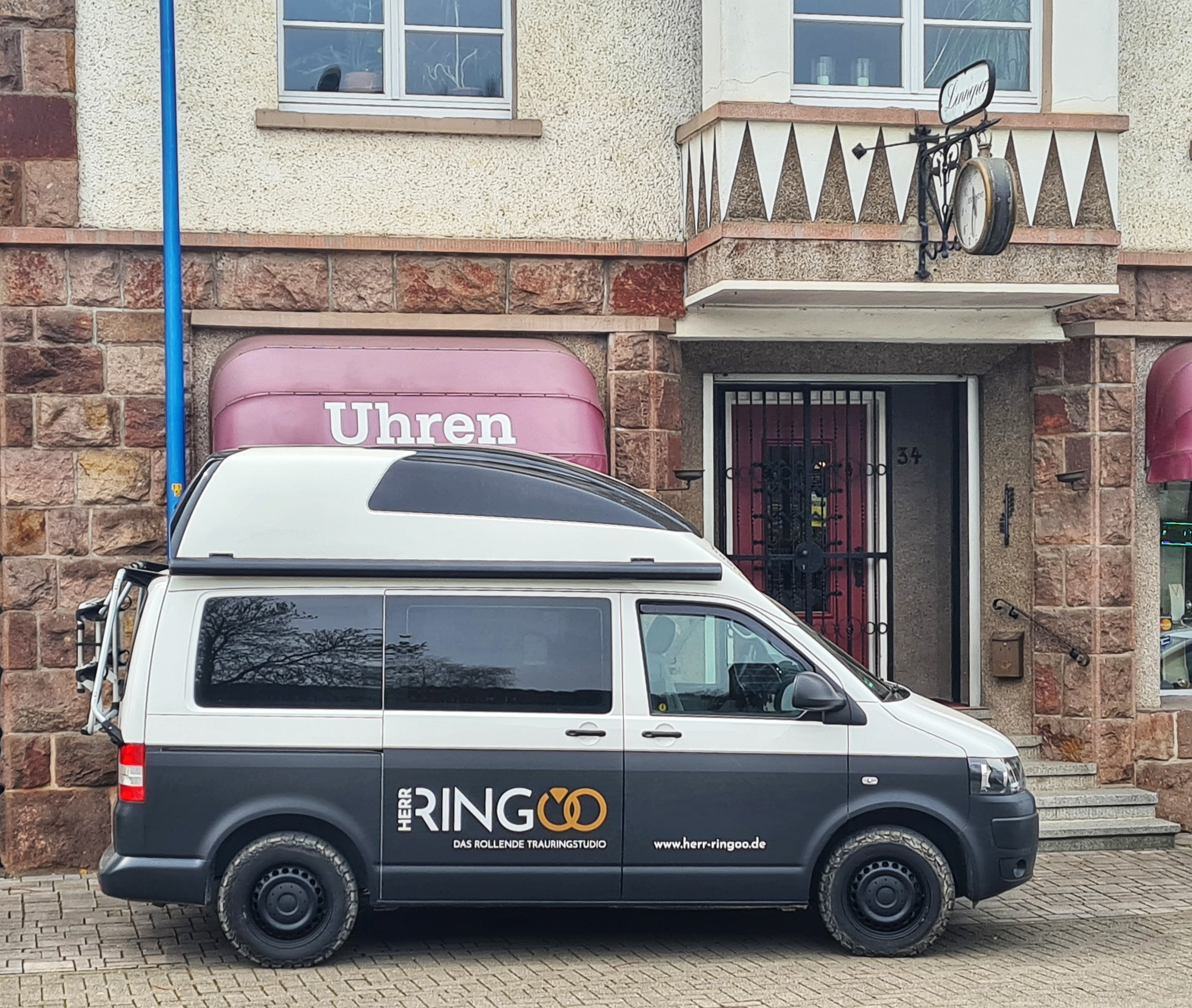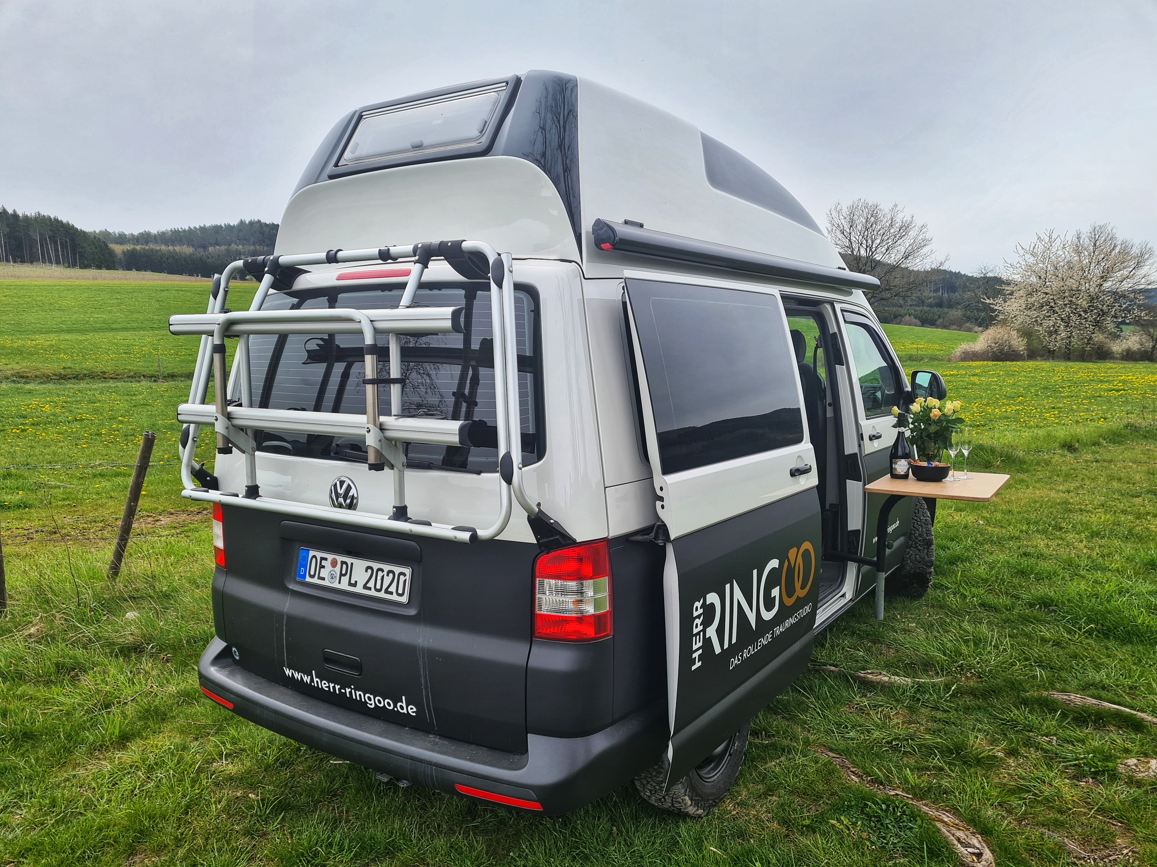 In der Sauna kam ihr ganz spontan die Eingebung eines rollenden Trauringstudios, und wie es der Zufall wollte, stand gerade der „T5 Campervan“ eines Bekannten ihrer Tochter zum Verkauf: Fertig ausgebaut und ideal für ihr Vorhaben!