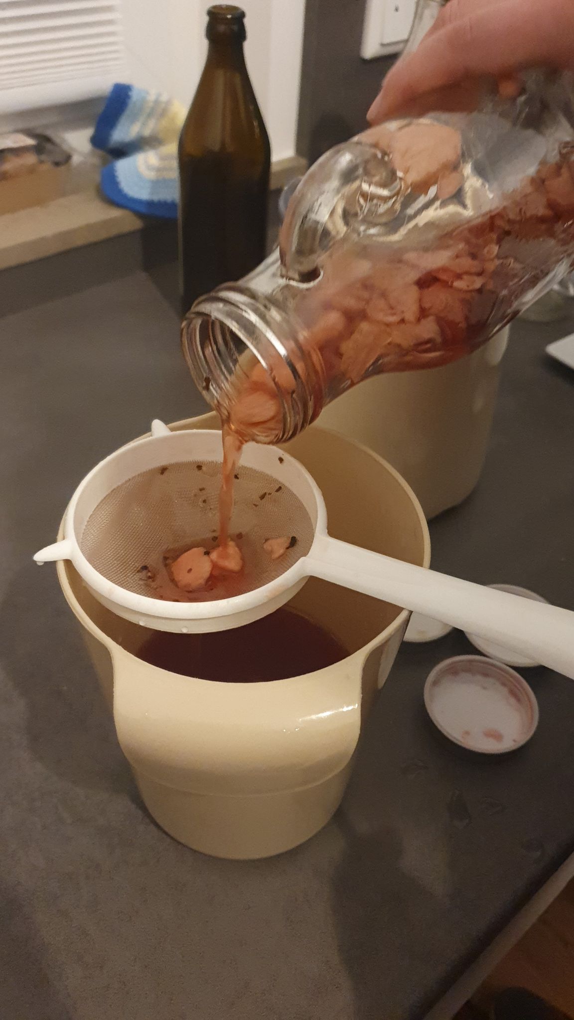 So, wie der Geschmack in die Flasche kommt, weißt du nun, doch was ist eigentlich mit dem „Spirit“? Am besten eignen sich hierfür neutrale Spirituosen wie Korn, Wodka oder Gin… Einfach die 750-ml-Flasche bzw. die 250-ml-Flasche mit Alkohol auffüllen, mindestens eine Woche ziehen lassen, zwischendurch schütteln und am Ende durch ein Sieb ausgießen – fertig!