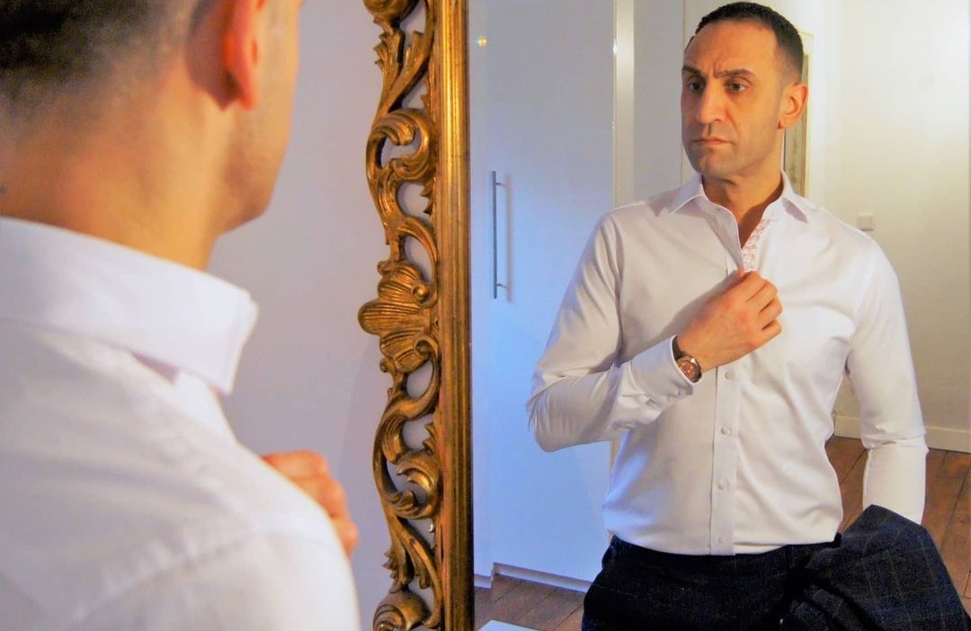 Da mir selbst die Hemden nie so richtig gepasst haben – wie ich eben schon erzählt habe -, habe ich irgendwann begonnen, mir meine eigenen Hemden schneidern zu lassen. Aber die Preise waren wirklich utopisch, das war richtig teuer! Und dann habe ich mir gesagt: Maßgeschneiderte Hemden sollten nicht nur für Menschen da sein, die sehr viel Geld haben, sondern auch ein ganz normaler Mensch, der irgendwo seinen Schichtdienst macht und sich mal etwas gönnen möchte, der auch mal einen schönen Anzug mit einem schicken Hemd darunter tragen möchte, der soll sich das auch leisten können! Das war mir sehr, sehr wichtig… Und man darf nicht vergessen, wie sich so etwas auf den jeweiligen Menschen auswirkt: Man fühlt sich ja schon irgendwie wohler oder selbstbewusster, wenn man Kleidung von einer hochwertigen Marke trägt; wenn man dann noch alles extra auf sich selbst zugeschneidert bekommt, seine eigenen Wünsche und Vorstellungen individuell umsetzen kann, fühlt man sich noch mal viel, viel besser. Das ist anders, als ein Hemd von der Stange zu kaufen!