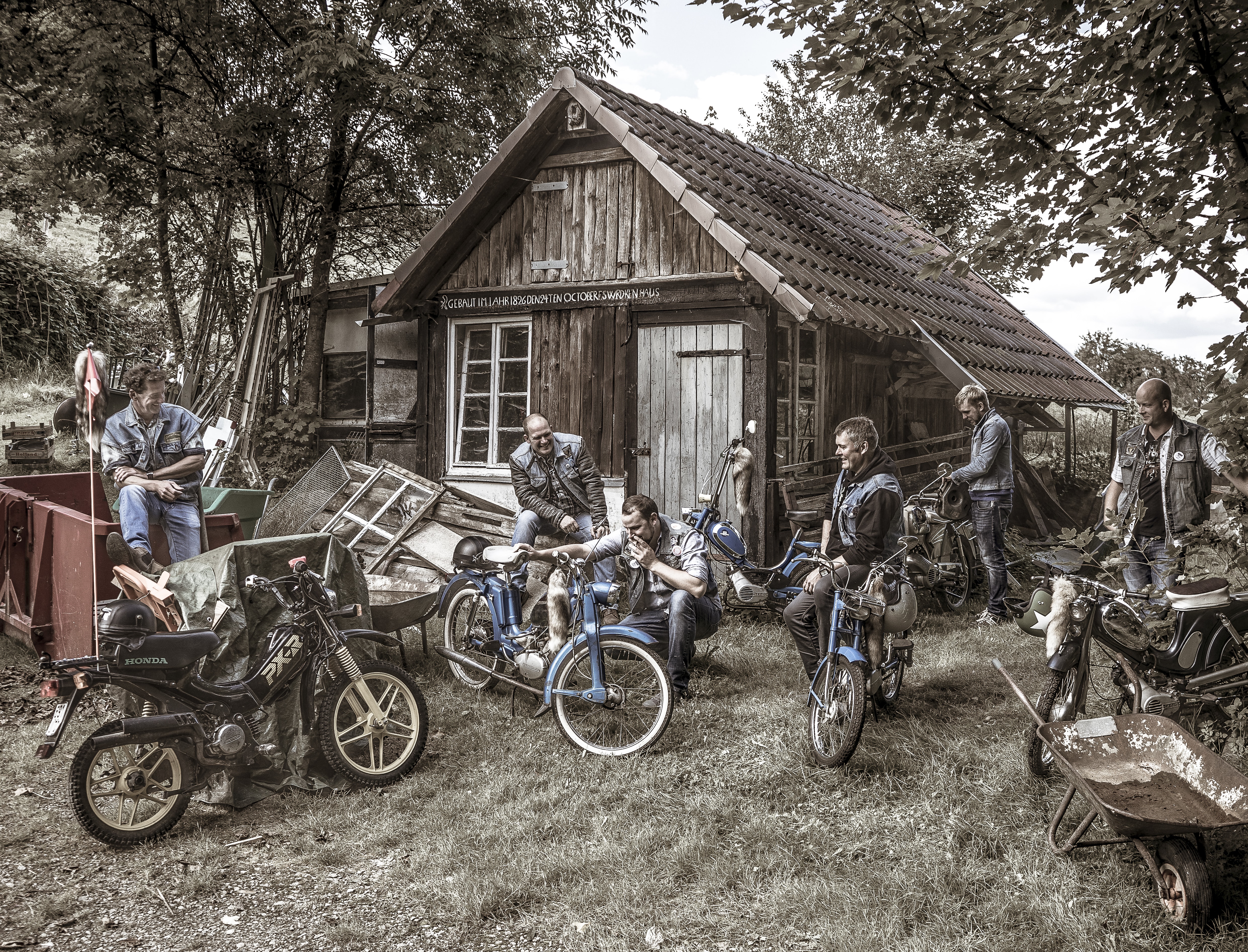 Wacken 2014 – die Sonne brennt… Unter dem Einfluss von dröhnenden Bässen – und möglicherweise auch etwas Alkohol – entdeckten ein paar Lennestädter, dass sie noch mehr gemeinsam hatten, als die Vorliebe für gute Musik: die Leidenschaft für Mofas! Es macht ja auch schließlich viel mehr Spaß, gemeinsam durch die Gegend zu knattern, und so beschlossen sie, die „Mofabande Grevenbrück“ zu gründen.