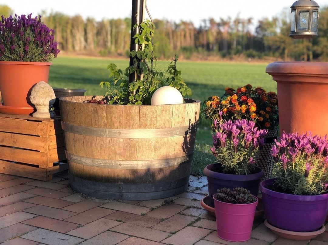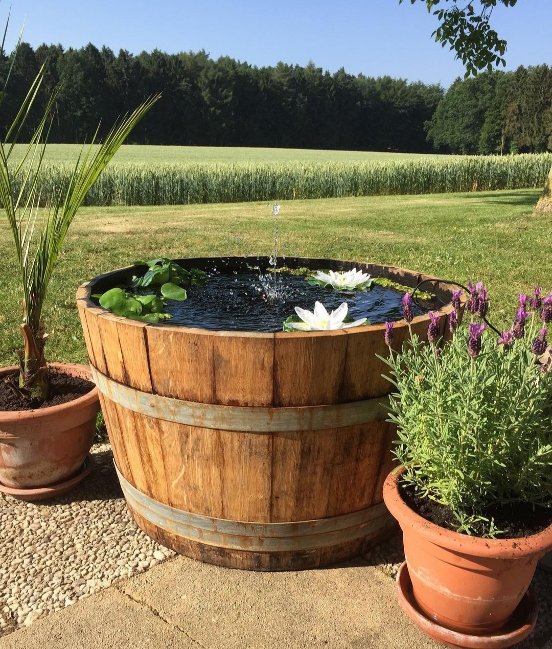 Auch im Außenbereich machen die Unikate aus der „Fass-Schmiede“ einiges her: Als Regentonne, Pflanzkübel, Mini-Teich, Stehtisch, Gartenliege oder Bank – Jana und ihre Mitarbeiter haben sich einiges für dich einfallen lassen…
