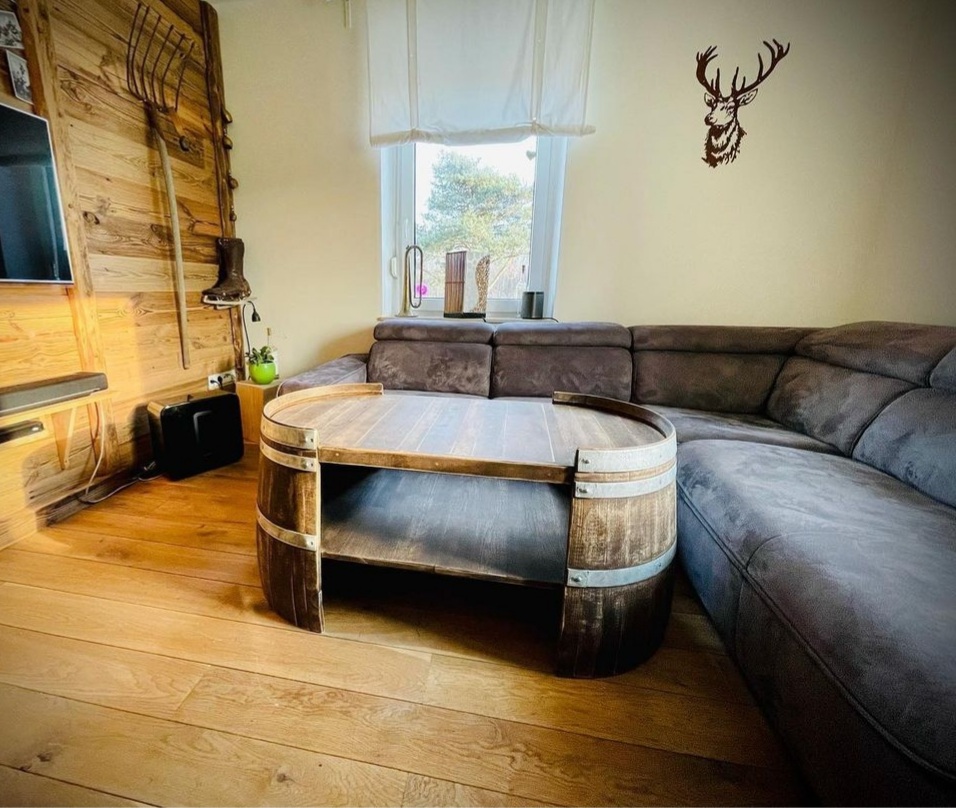 Du wirst staunen, was man aus einem Fass, das eigentlich nur zum Lagern des Weines gedacht ist, so alles machen kann! Fangen wir mal im Wohnbereich an: Wie wäre es mit einem Couchtisch, groß oder klein, mit Einlegeboden, Holzdeckel oder Glasplatte, die den Blick in das Innenleben freigibt!?