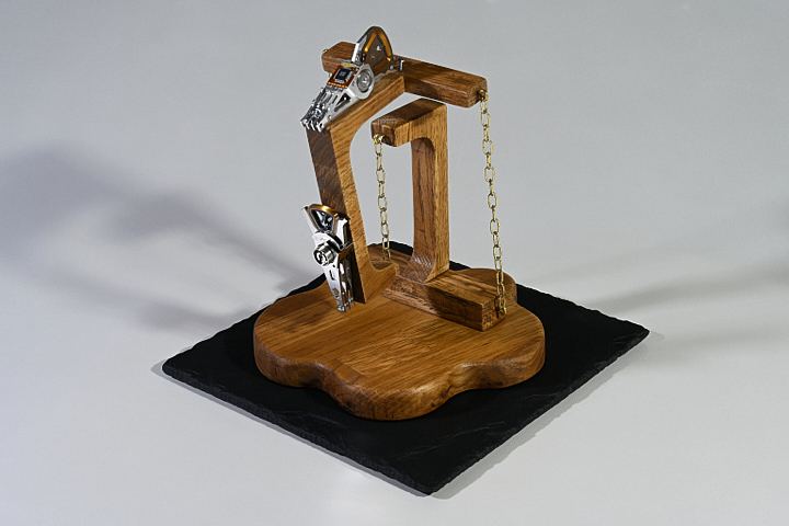 Ähnlich, und zugleich doch wieder ganz anders, zeigt sich die Werkreihe „Tensegrities“. Auch hier widmet sich Gunther Lill wieder dem Zusammenhang zwischen Kunst und Wissenschaft, allerdings steht dieses Mal die Physik im Vordergrund. Der Titel setzt sich aus den Wortbestandteilen „Tension“, als Spannung, und „Integrität“ also Ganzheit oder Einheit, zusammen, und beschreibt einen Gleichgewichtszustand, bei dem sich die auswärts gerichteten Kräfte der festen Elemente und die einwärts gerichteten Kräfte der elastischen, beweglichen Elemente ausgleichen…