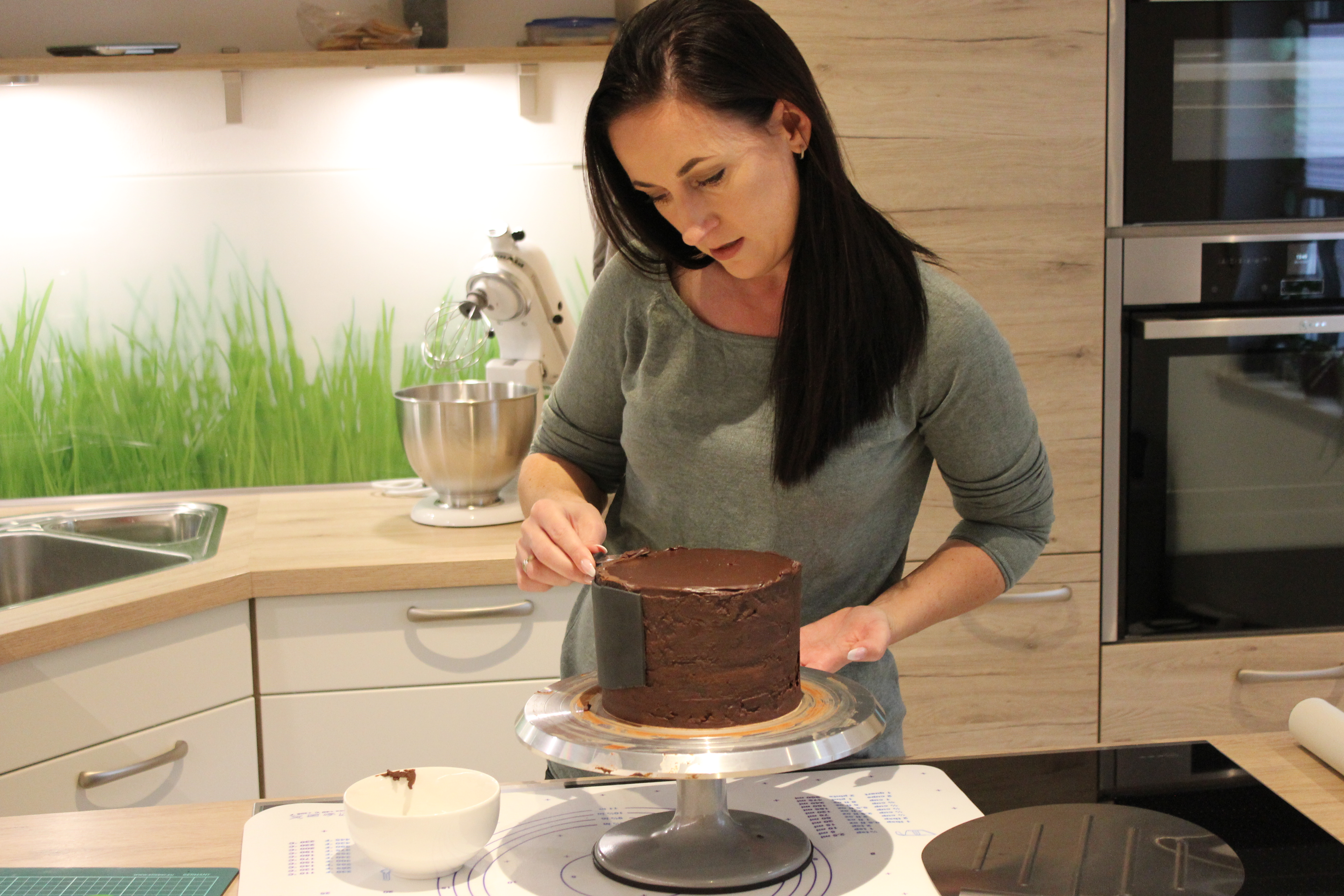Falls etwas übrig bleibt, bitte nicht wegwerfen; aus den Resten kannst du nämlich ganz wunderbar Cakepops, also kleine Küchlein am Stiel machen… So, nun kommt die Torte erstmal über Nacht in den Kühlschrank!