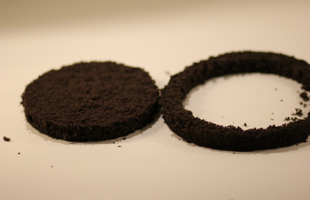 Zunächst einmal wird der Schokoladen-Biscuit-Boden schwarz eingefärbt, gebacken und anschließend in vier gleichmäßige, etwa zwei Zentimeter dicke Scheiben geschnitten. Dann nimmst du dir einen Teller als Schablone und schneidest die Randschicht ab. Dann bereitest du die Blaubeer-Creme vor, das genaue Rezept gibt´s auf Sarahs Blog; dort erfährst du auch, wie du den benötigten Vanillezucker ganz leicht selbst machen kannst, und wie du den Biscuit-Boden richtig gut hinbekommst…