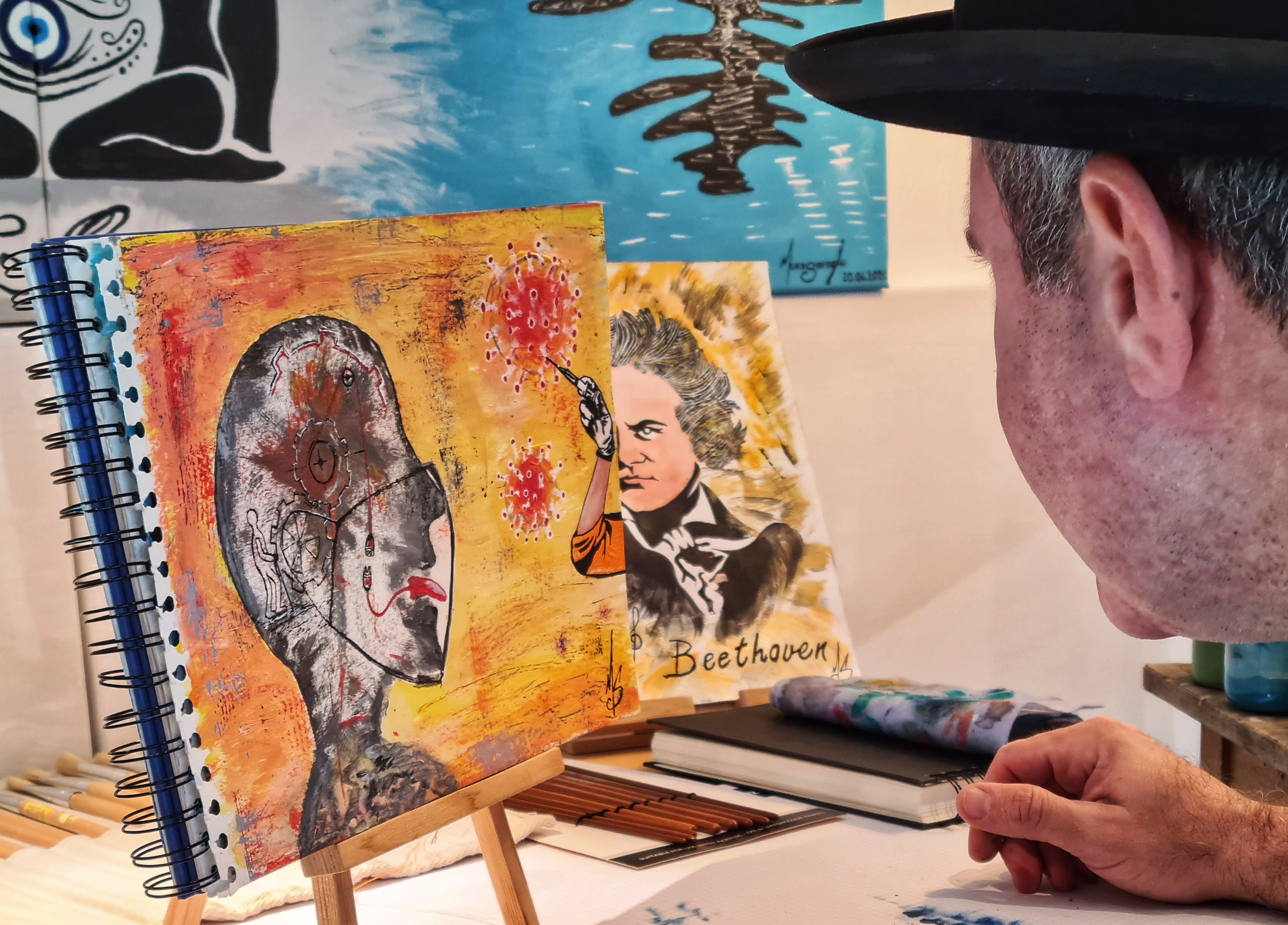 Besonderes erschafft auch der Mixed-Media-Künstler Gunther Lill aus Altena: In seine Werkreihe „Art4Heart“ hat er beispielsweise medizinische Stents eingearbeitet. Auch Ludger Halbe aus Lennestadt verwendet für seine Kunstwerke ein besonderes Material: Aus Treibholz und Tiffany-Glas zaubert er bunte Unikate.
