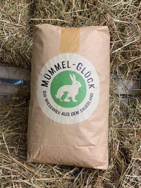 Rund um Menden und Iserlohn fanden Birgit und Thomas einige Landwirte, die die entsprechende Qualität liefern konnten: Schonende Bewirtschaftung, die Ernte zum optimalen Schnittzeitpunkt und die natürliche Trocknung durch Wind und Sonne zeichnen das aromatisch riechende Wiesenheu von „Mümmel-Glück“ aus. Vor Ort wird es in der Scheune locker zu Ballen gepresst und dann von Birgit und Thomas in liebevoller Handarbeit verlesen und verpackt.