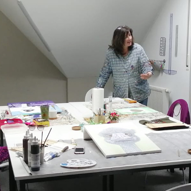 In ihrem eigenen kleinen Atelier-Raum gründete sie 2004 ihre Malschule, um auch Andere zu ermutigen, ihre kreative Ader auszuleben. Doch du kannst dir sicherlich vorstellen, dass es ziemlich aufwendig war, immer wieder die eigenen Bilder wegzuräumen, um Platz für die Kurse zu schaffen, zumal die Anzahl der Malschüler stetig wuchs… Und so folgte fünf Jahre später der Umzug in das großzügige Dachgeschoss-Loft am Haunerbusch mitten in Kierspe.