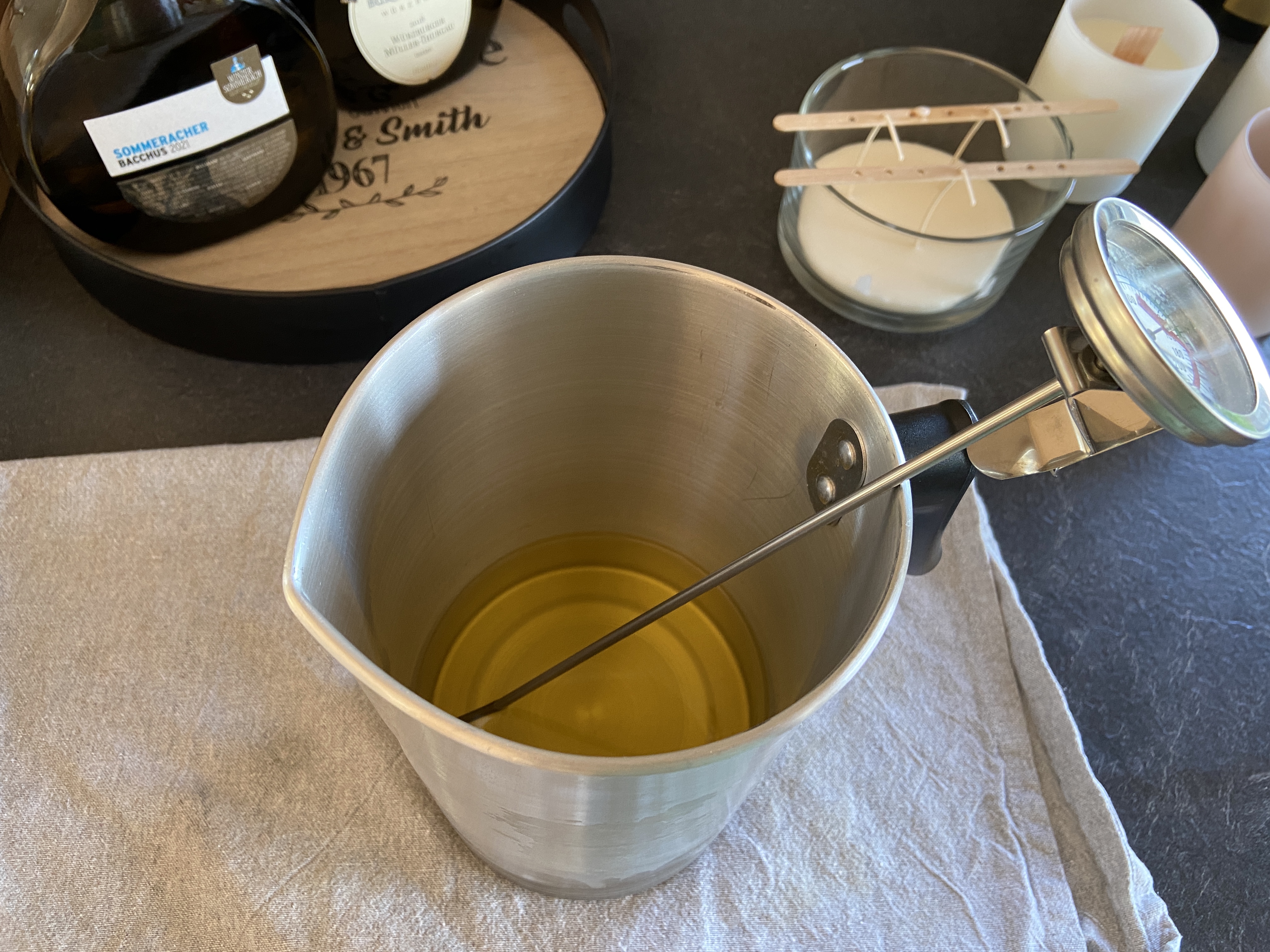 Aber nun war das DIY-Set ja da, also machte sich Steffen noch an den Feiertagen daran, Wachs zu erwärmen, mit einem Docht zu bestücken und in kleine Döschen zu füllen. Schnell merkte er, dass er mit seiner Vorahnung richtig gelegen hatte – es machte ihm tatsächlich riesigen Spaß, und er kam auch direkt zu schönen Ergebnissen. Die Leidenschaft war geweckt, und irgendwann reichte ihm das vorgefertigte Set nicht mehr aus. Steffen wollte nicht nur kleine Döschen, sondern schöne Gläser füllen, seine eigene Note einbringen, kreativ sein.