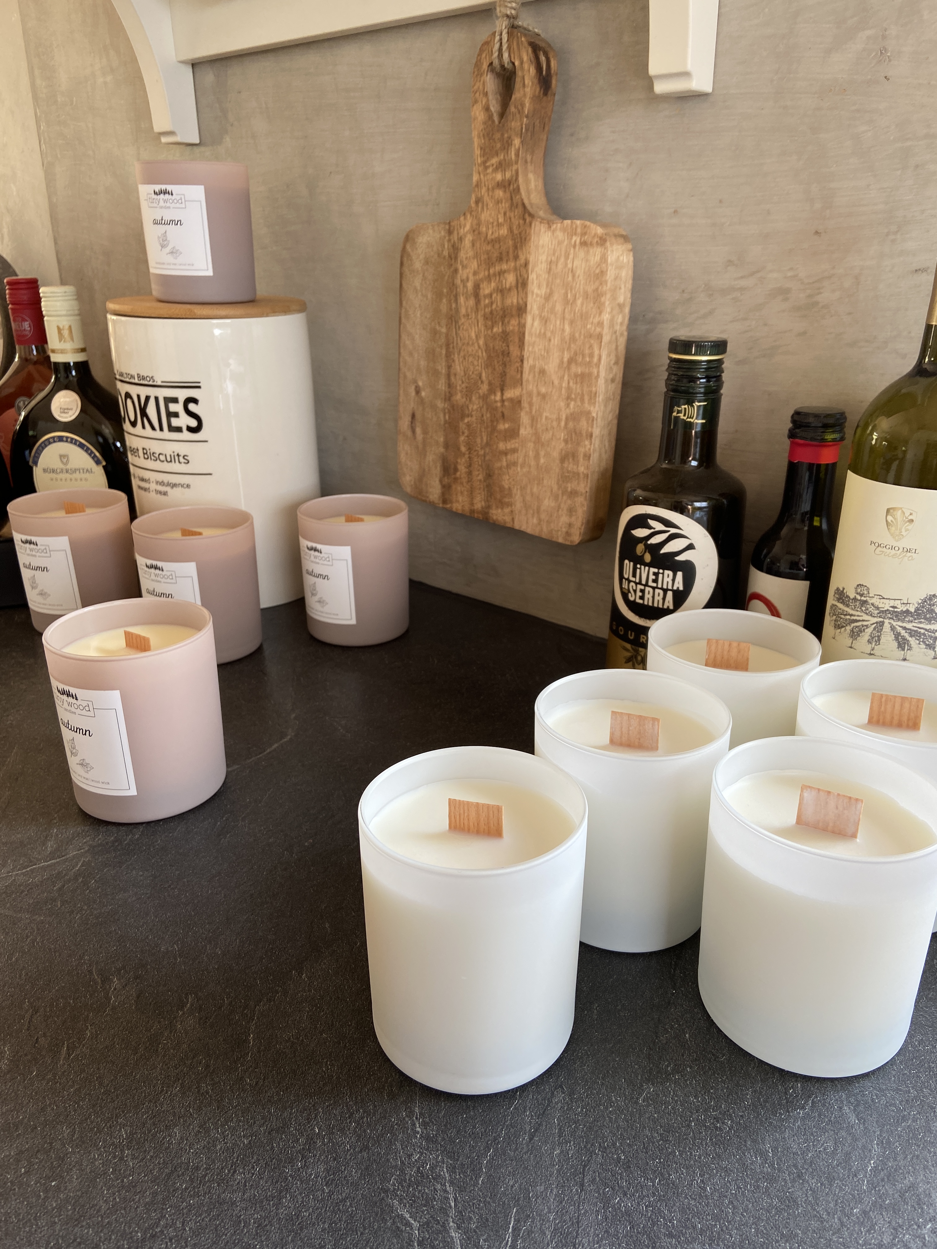 Kaum war diese Kerze in Steffens Etsy-Shop eingestellt und auch im Schmallenberger Buchladen „Wortreich“ zu haben, machte er sich auch schon an die Entwicklung der Düfte für den Herbst; seit kurzem sind nun „Autumn“ mit einem Duft von Orangenscheiben, Sandelholz und Vanille sowie das angenehm holzig riechende und an einen Waldspaziergang erinnernde „Pine Wood“ zu haben. Und was soll ich sagen: Selbstverständlich steckt Steffen aktuell schon mitten in den Vorbereitungen für die Winterdüfte…