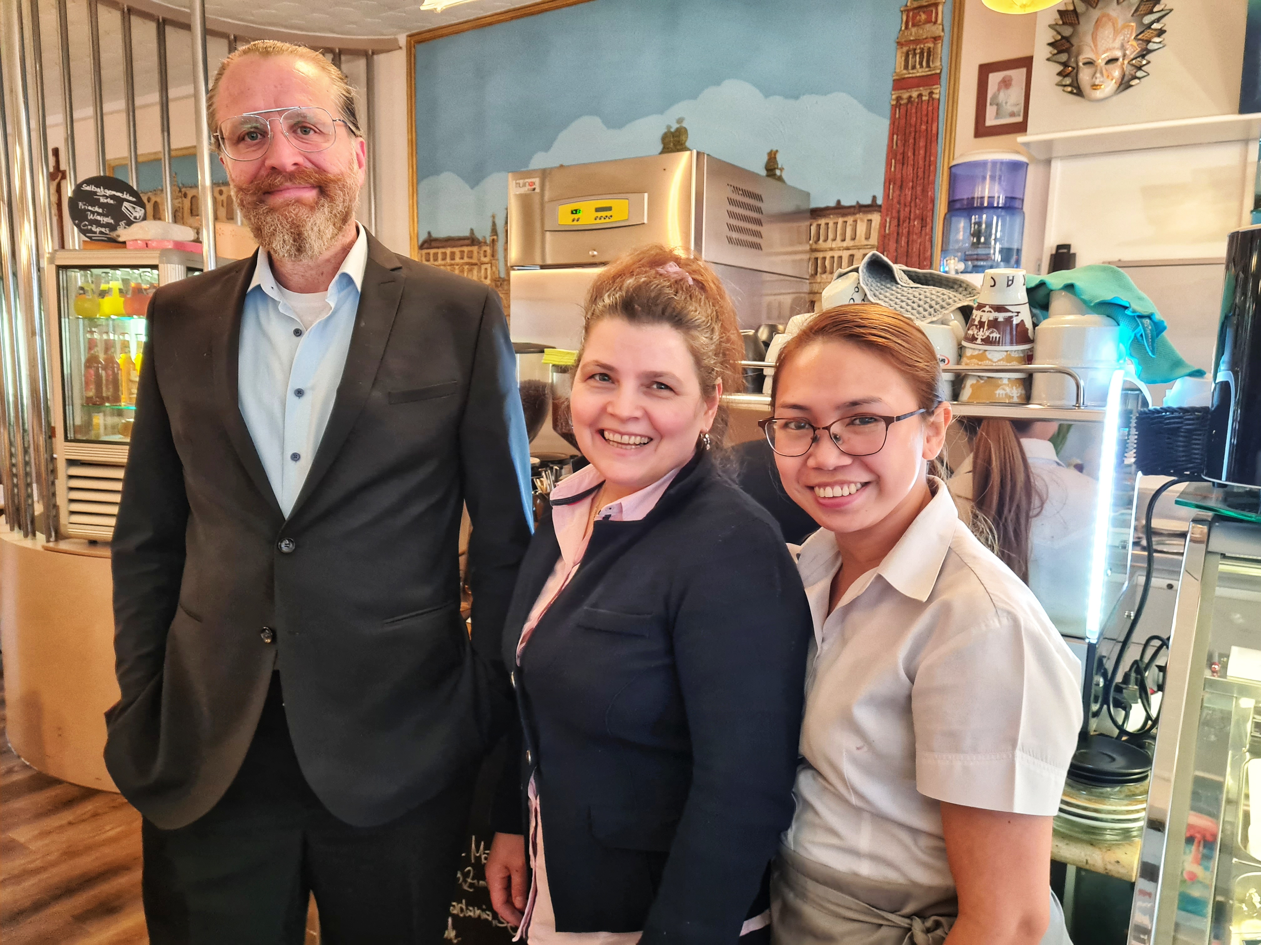 Zuerst einmal muss ich sagen: Ohne meine Frau Daniela hätte ich das Eiscafé nicht so erfolgreich machen können! Ganz am Anfang haben uns auch meine Mutter und mein Schwiegervater viel geholfen; meine Schwiegermutter hat unsere Kinder betreut, damit wir hier sein konnten, später stand dann auch meine Tochter hinter der Eis-Theke. Über die Jahre ist das Team dann aber natürlich größer geworden, das hätten wir allein mit der Familie nicht mehr geschafft!