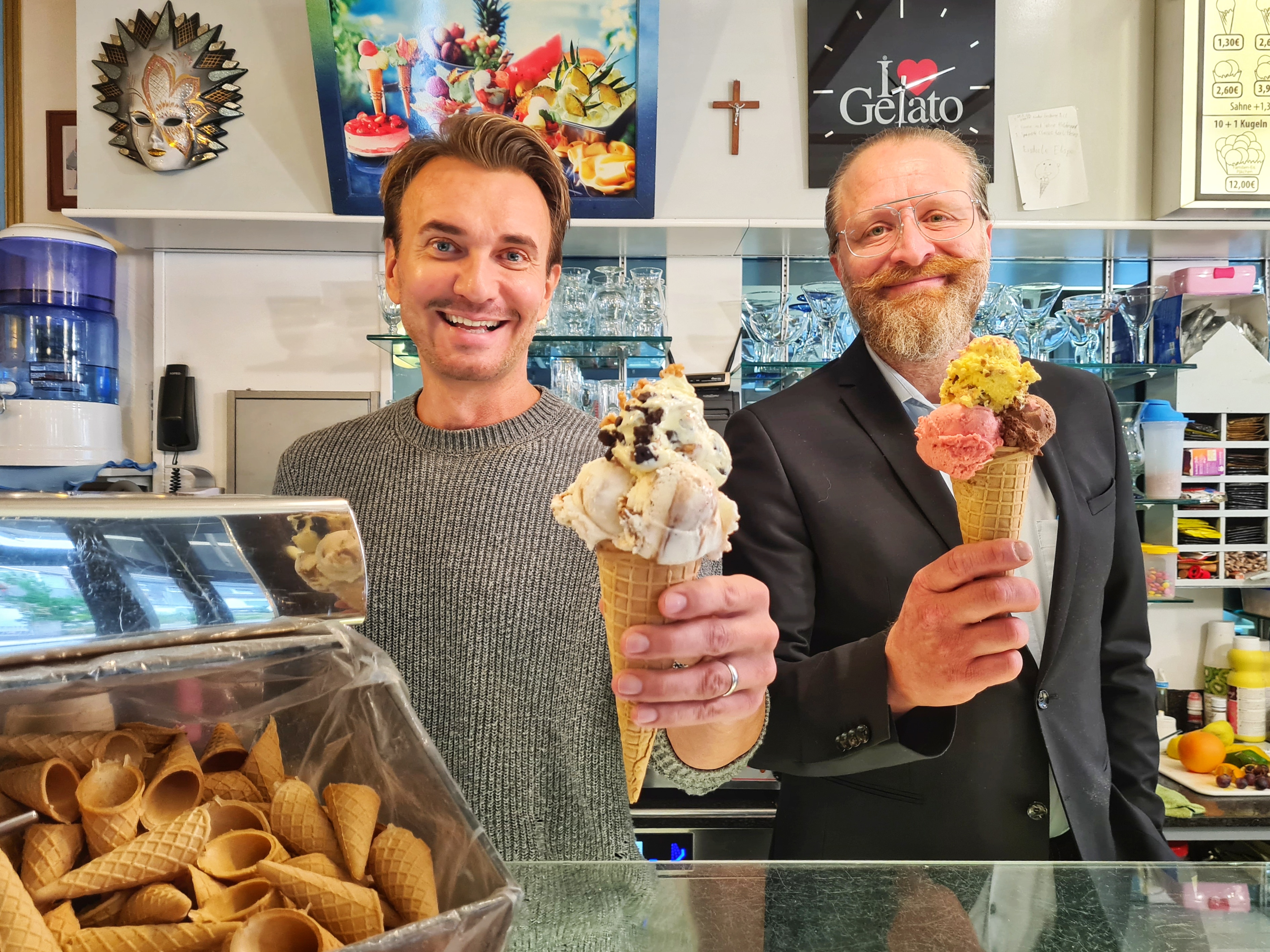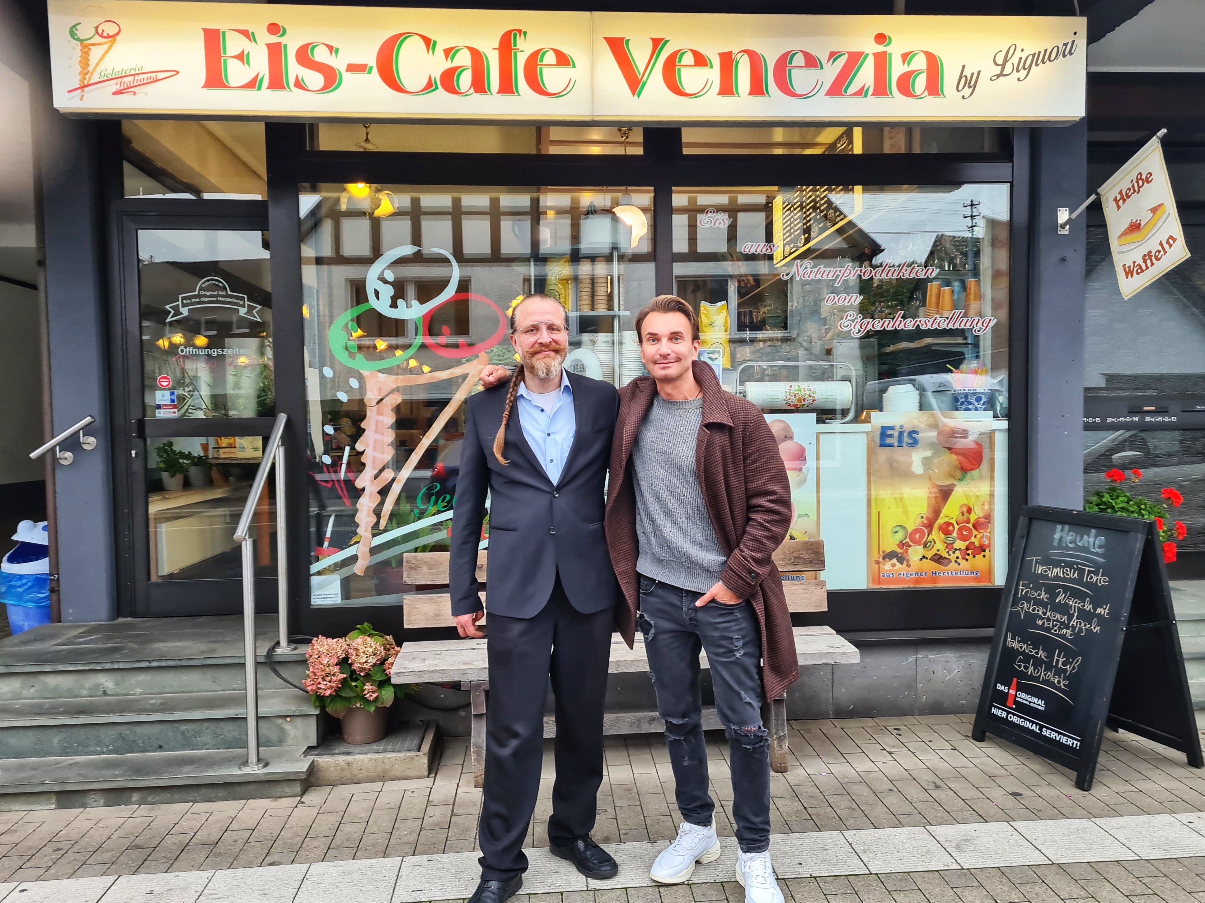 Auch wenn sich die Sonne gerade noch einmal durch die dichte Wolkendecke wagt – die Eis-Zeit ist längst vorbei!? Ach, Quatsch, gutes Eis geht immer! Schließlich sorgt es für eine ordentliche Portion guter Laune, die du bestimmt auch besonders an grauen Herbsttagen ziemlich nötig hast; außerdem musst du dir bei diesen Temperaturen nicht einmal Sorgen machen, dass es dir wegschmilzt, und kannst ganz genüsslich schlecken… Vielleicht ist das der Grund, warum auch Jean-Marc Birkholz regelmäßig im „Eiscafé Venezia“ in Lennestadt-Elspe vorbeischaut, vielleicht liegt es aber auch daran, dass er seinen guten Freund Antonio „Toni“ Liguori besuchen möchte: