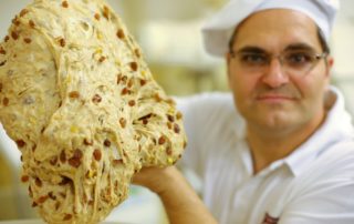 Und so kreierte er zum Jahrtausendwechsel den Millenniums-Stollen, mit Riesling verfeinert kam dieser bei den Sauerländern aus nah und fern richtig gut an. Blöd nur, dass der Name ein Jahr später nicht mehr so richtig passend war, also gab es eine neue Sorte, dieses Mal mit Champagner… Nun war die Experimentierfreude des Bäckers endgültig geweckt, fortan gab es nun Jahr für Jahr eine neue Kreation, aus Jörg Liese war „Der Stollenspezialist“ geworden:
