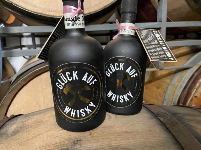 Wobei, eine Besonderheit sollte ich doch noch erwähnen: Der Glückauf-Whiskystollen hat nicht nur selbst im Erzbergwerk Ramsbeck gelegen; er enthält auch den hauseigenen Glückauf-Whisky. Spirituosen aus der Backstube? Naja, nicht so ganz, Jörg Liese kam zufällig bei einer Weihnachtsmesse mit der „Kempers Brennerei“ aus Olpe in Kontakt, zögerte nicht lange und ließ die schweren Fässer nach zweijähriger Lagerzeit 300 Meter unter Tage bringen, damit der aus Roggenkörnern und Sauerländer Quellwasser gebrannte Whisky hier bei einer konstanten Temperatur von zwölf Grad noch den letzten Schliff bekommt…