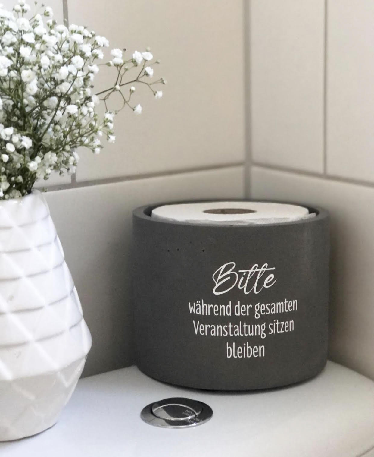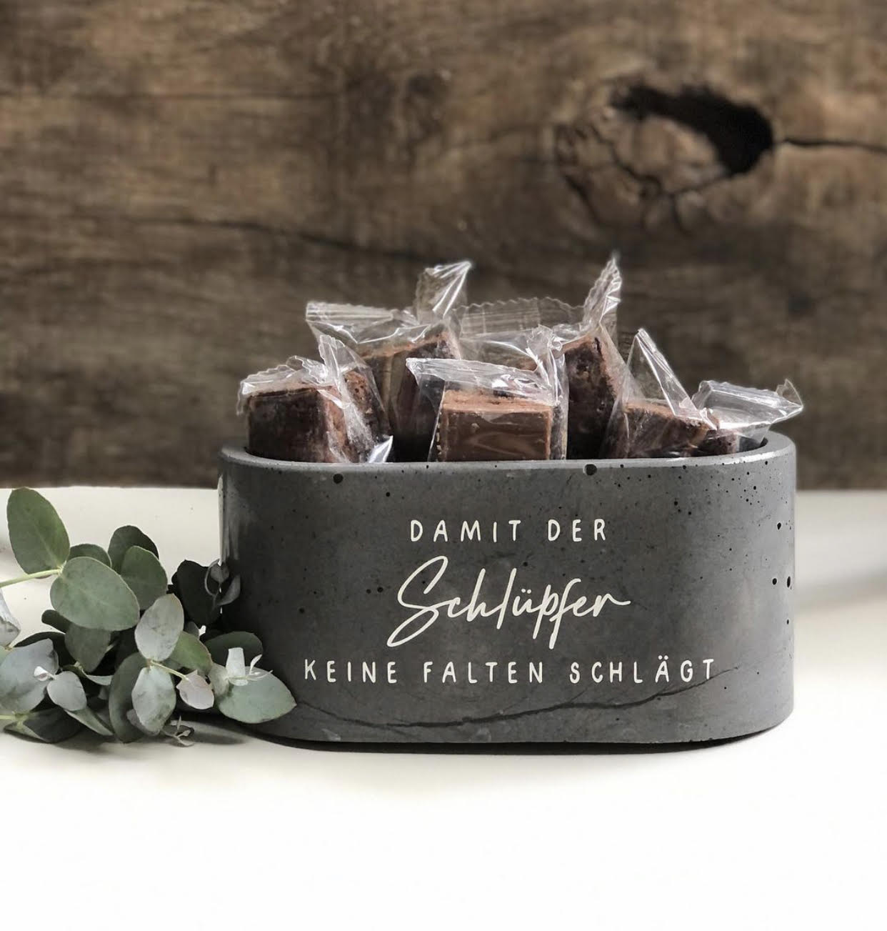 Daneben sind flotte Sprüche ihr Markenzeichen – ob „Geschäftspapier“ oder „Tatortreiniger“ auf dem Toilettenpapierhalter oder „Damit der Schlüpfer keine Falten schlägt“ auf der Süßigkeiten-Schale, so manches Unikat sorgt garantiert für ein Schmunzeln beim Betrachter… Früher hat sie alles von Hand selbst beschriftet oder mit Pinsel und Farbe aufgemalt, inzwischen kommen aber auch Plotter und Labelmaker zum Einsatz.