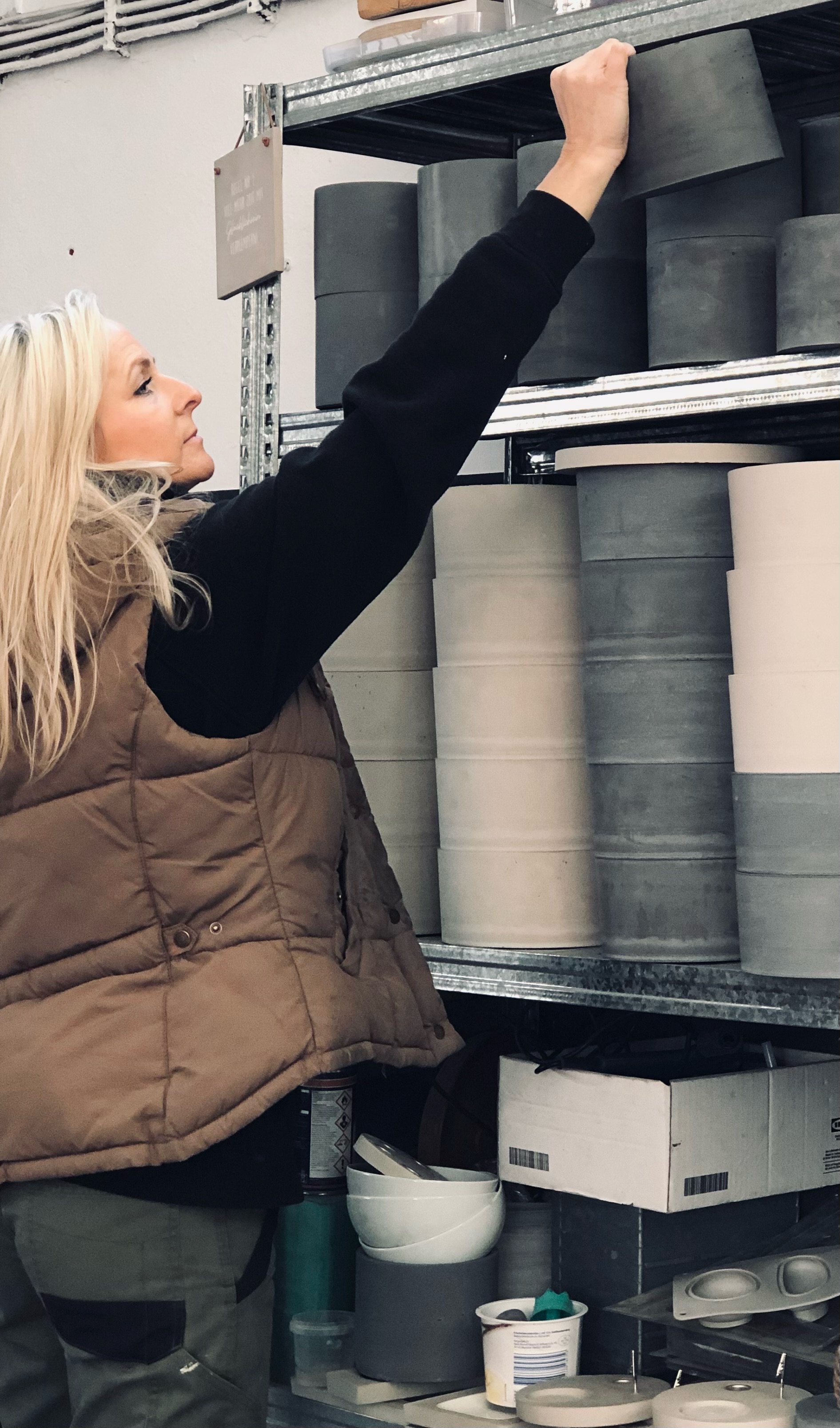 Ihr gesamtes Wohnhaus wurde zur Kreativzone; hauptsächlich der Keller diente als Lager und Arbeitsplatz, doch auch auf dem Esstisch knirschte irgendwann der Zement – also musste eine andere Lösung her: Vor zwei Jahren mietete sie gemeinsam mit dem Iserlohner Möbelbauer Olaf Terfloth eine Werkstatt an, zunächst in der Galmeistraße, seit letztem Jahr dann nun in der Baarstraße. Hier hat Julia genügend Platz für das Beton-Rührgerät und all die Formen, die sie sich eigens bauen lassen oder selbst zusammengebastelt hat, und sie hat auch endlich wieder so etwas wie Feierabend, obwohl sie weiterhin liebt, was sie tut: