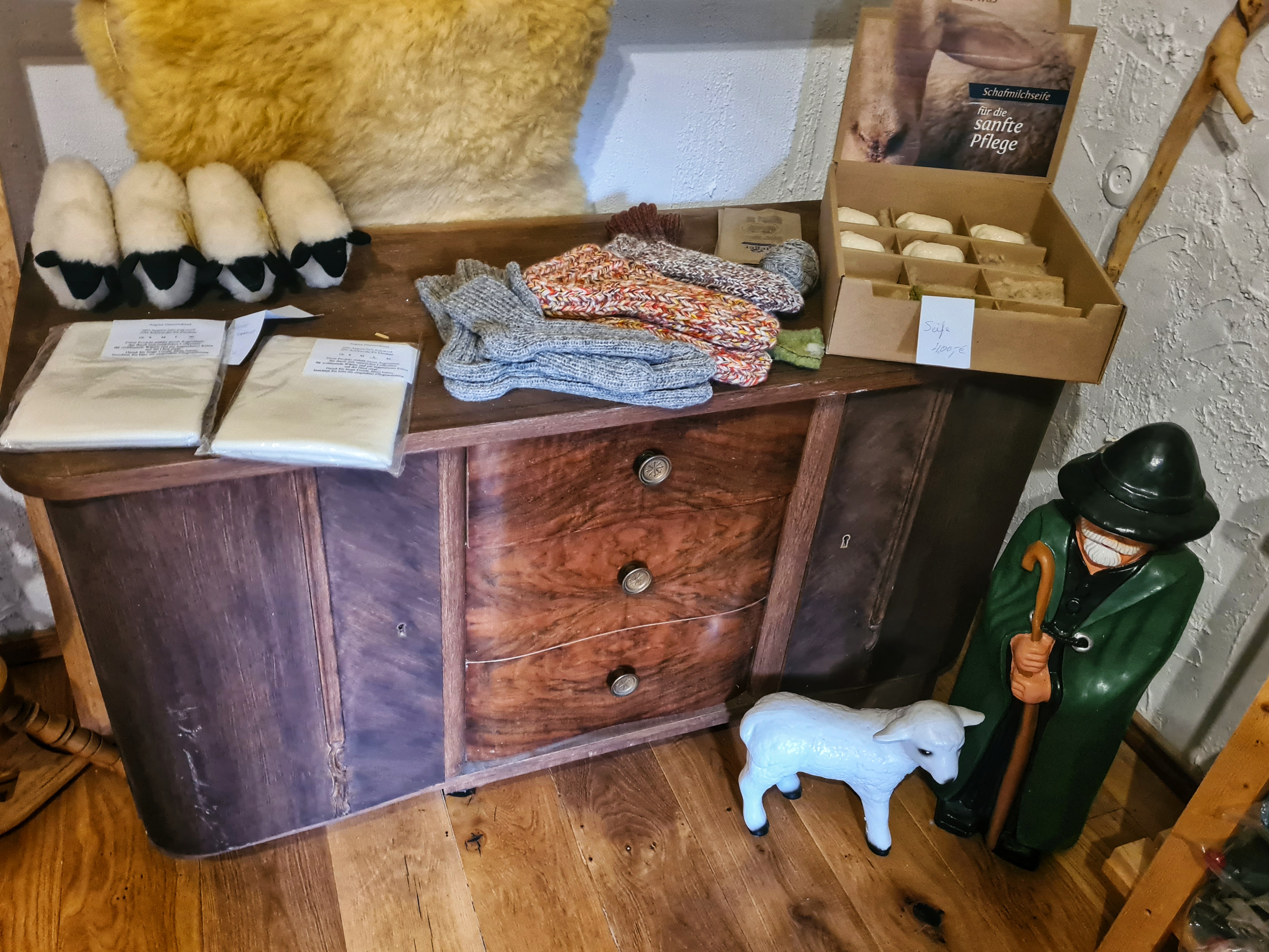 Die Herde ist ganzjährig draußen, aktuell steht sie auf dem Arnsberger Kreuzberg; täglich schaut der Hobbyschäfer bei Wind und Wetter hier vorbei – zum einen, um nach dem Rechten zu sehen, zum anderen, um die Ruhe zu genießen, die von den Tieren ausgeht. Die liebevolle und natürliche Aufzucht, die sattgrünen Weidewiesen im Sommer und die hochwertige Heulage im Winter sorgen schließlich auch für eine hochwertige Qualität der Produkte: Die Wolle wird in einem kleinen Traditionsbetrieb in der Umgebung gesponnen, zu Knäueln aufgewickelt und teils zu Socken verstrickt; daneben findest du im 2018 eröffneten „Kaufladen Regional“ auch kuschelige Felle und andere hauseigene Lamm- und Schafprodukte wie Wurst, Pfefferbeißer und Schinken.