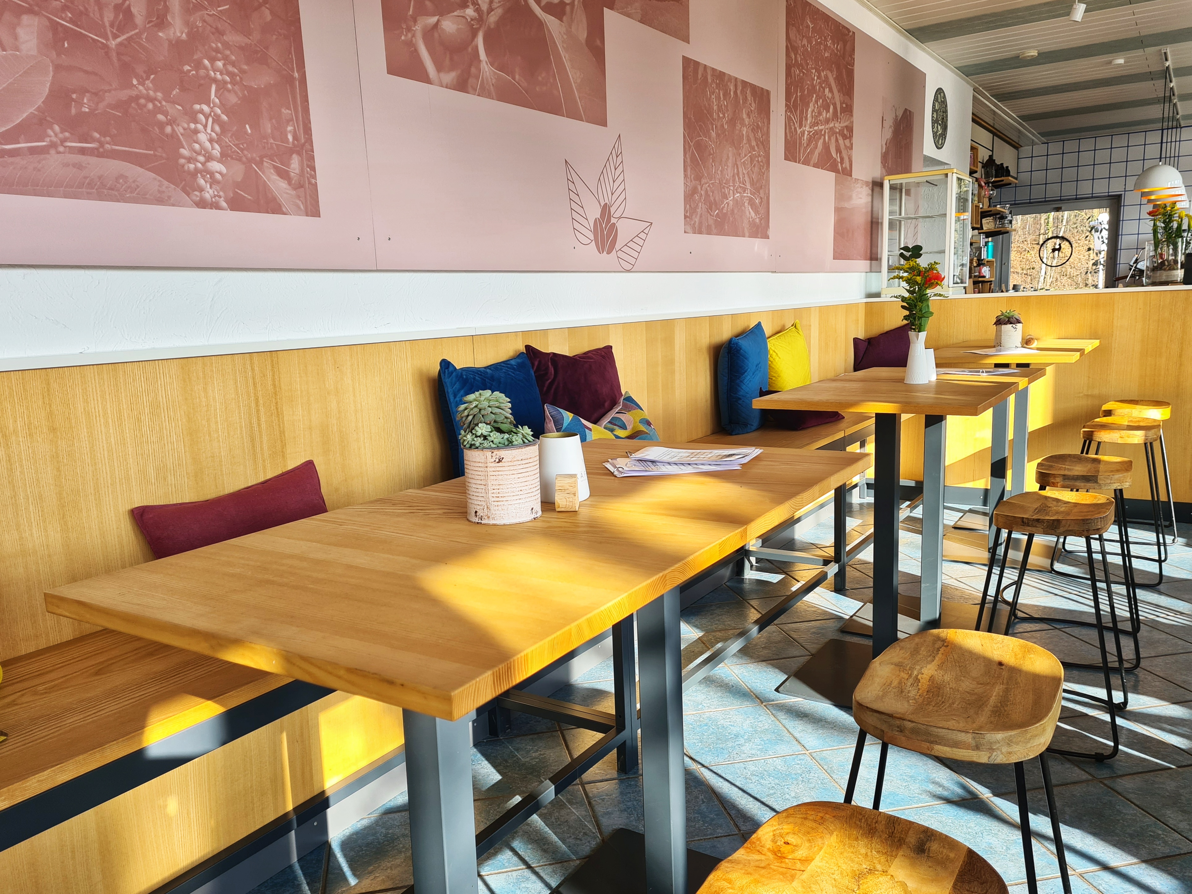 Der Anker war geworfen, schnell machte sich René an den Innenausbau und die Einrichtung des ehemaligen Restaurants. Bodenständig-gemütlich sollte es werden, durch einen weltoffenen Flair und ein bisschen auch durch die hippen Kaffeebars in Australien inspiriert – „Auf´n Käffken“ sagt eigentlich alles… Geplant war die Eröffnung für den Frühling 2020, aus allseits bekannten Gründen machte das nicht allzu viel Sinn, aber seit dem 01. März 2021 kannst du die Kaffeekultur am Möhnesee nun in vollen Zügen genießen: