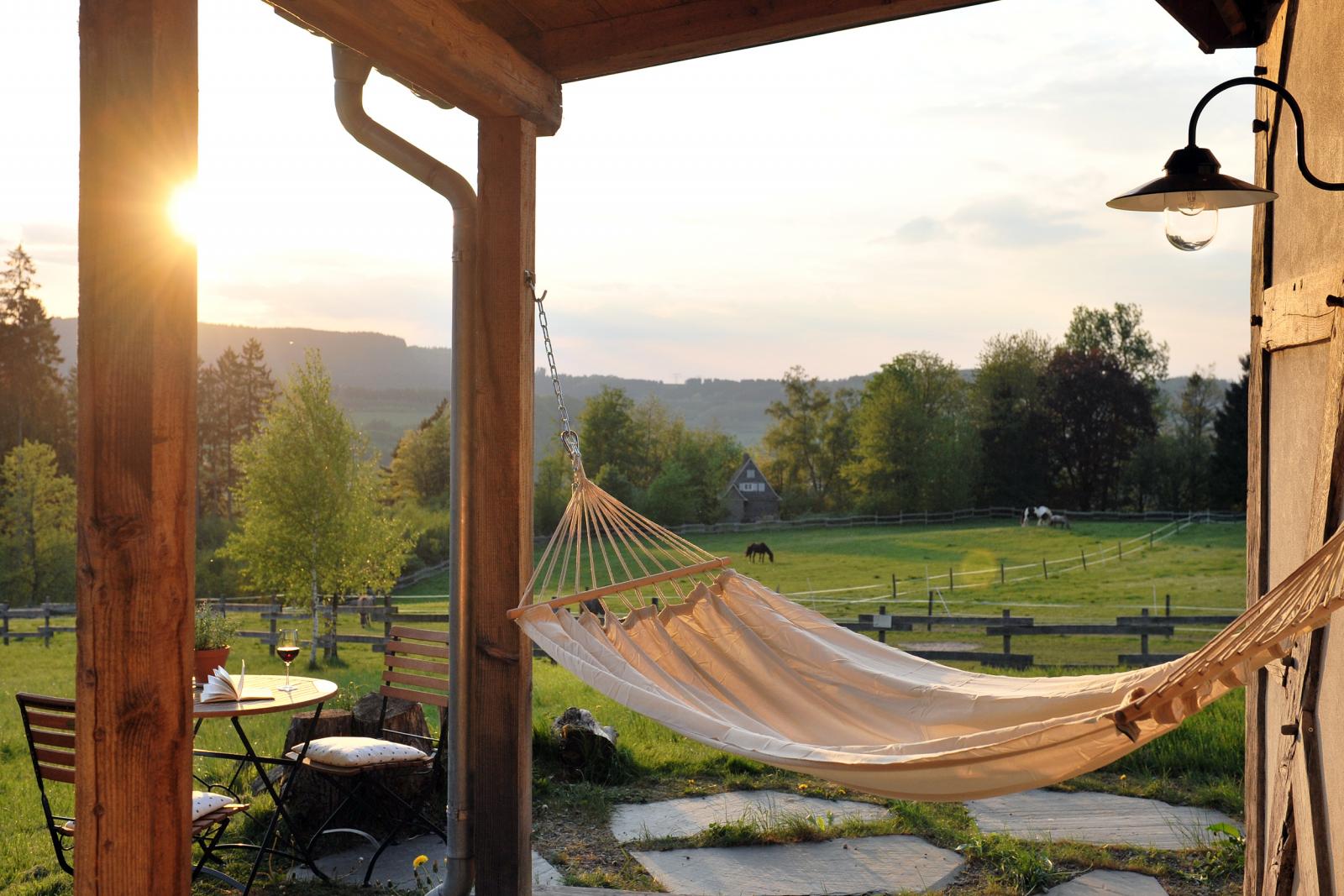 Obwohl deine Unterkunft über eine voll ausgestattete Küche verfügt, musst du natürlich nicht spülen. Frisch gestärkt kannst du es dir nun wieder gemütlich machen; bei schlechtem Wetter kuschelst du dich zum Beispiel vor den Kamin und liest endlich mal das Buch zuende, das zuhause so lange auf deinem Nachttisch lag, bei gutem Wetter fläzt du dich einfach auf die Hängematte, die zu jeder der Hütten gehört, oder auf die Relaxliegen, die über das Bergdorf verteilt aufgestellt sind… Und wenn du doch mal Hummeln in den Hintern bekommst: Hey, du bist mitten in der Natur, eine ausgiebige Wanderung ist jederzeit eine gute Idee!