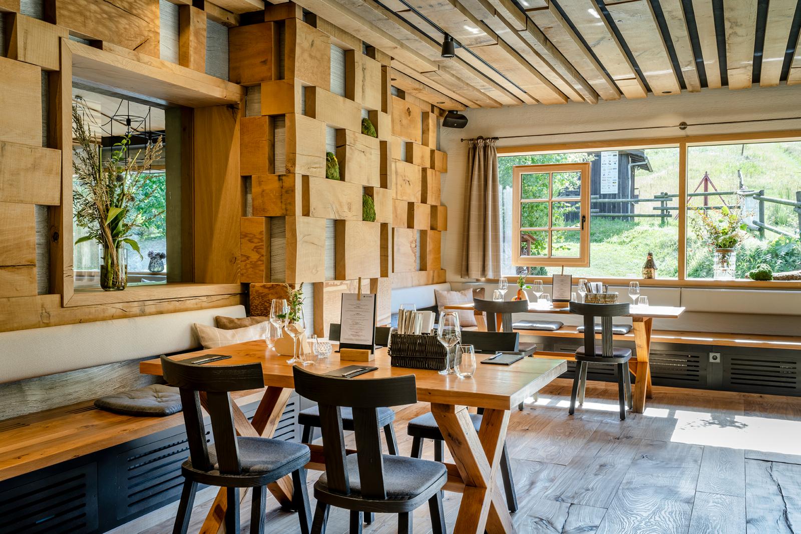 Serviert wird diese kulinarische Highlight in der „Handweiser Hütte“; auch sie kommt seit 2016 in neuem Gewand daher: Um mehr Licht in den Gastraum zu holen, wurde eine ganze Wand durch eine Glasfront ersetzt – hast du schon einmal so charmante Fenster im Fenster gesehen? –; der große Kamin in der Mitte sorgt weiterhin für behagliche Gemütlichkeit.