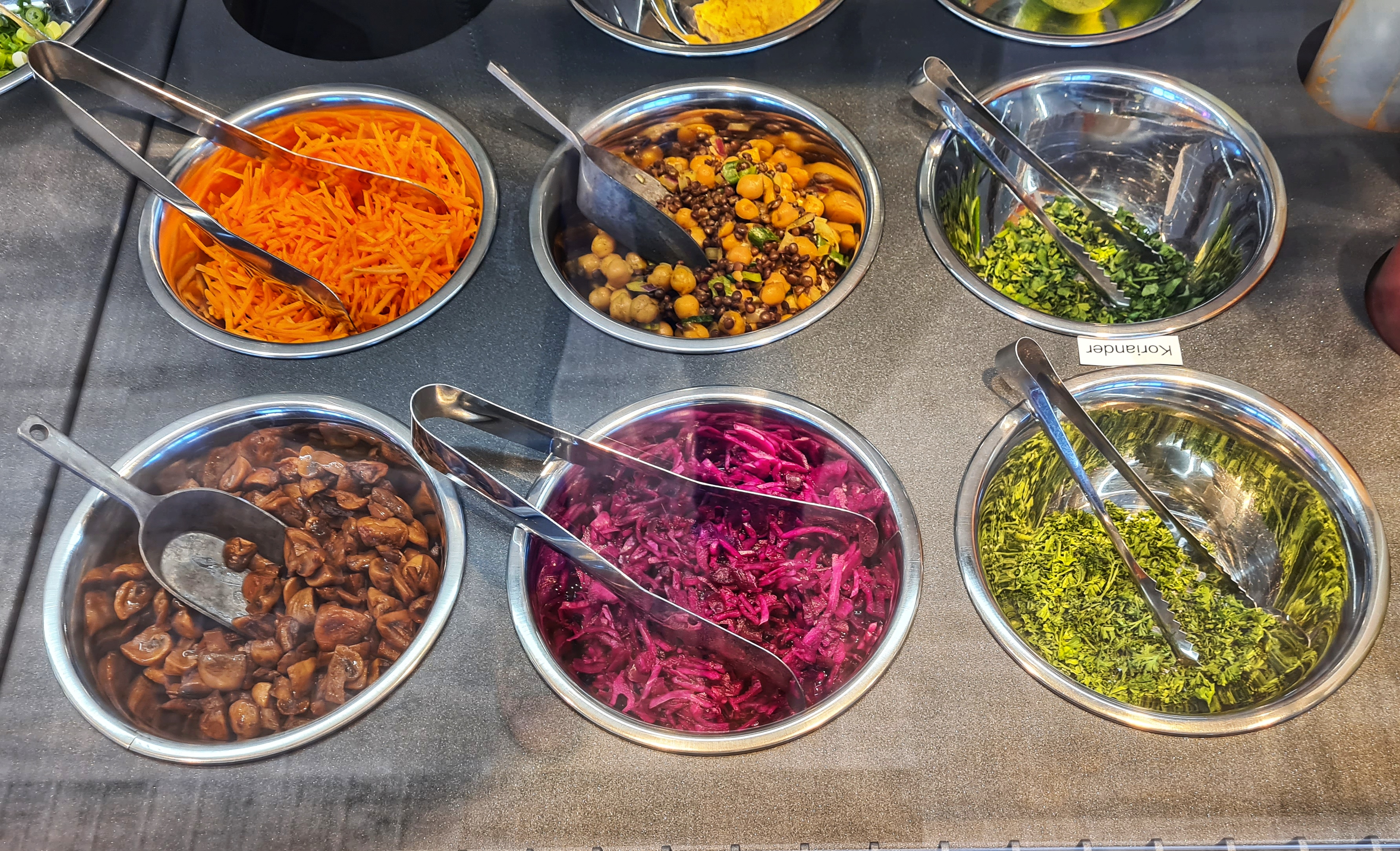 Bowls hatten Mia auf die Idee gebracht, mit Bowls sollte das „Incanto“ im vergangenen Herbst auch in seine erste Saison starten. Zusammen mit der „Kleinen Freiheit“ wurden eigene Rezepturen entwickelt; schließlich sollten die einzelnen Komponenten und Geschmacksrichtungen zueinander passen und sich perfekt ergänzen. Daher ist es auch am besten, wenn du dir eine der fünf fertig kreierten Bowls aussuchst; natürlich ist es aber auch möglich, einzelne Zutaten zu ersetzen oder zu ergänzen, es wird ja alles ganz frisch vor deinen Augen zubereitet.