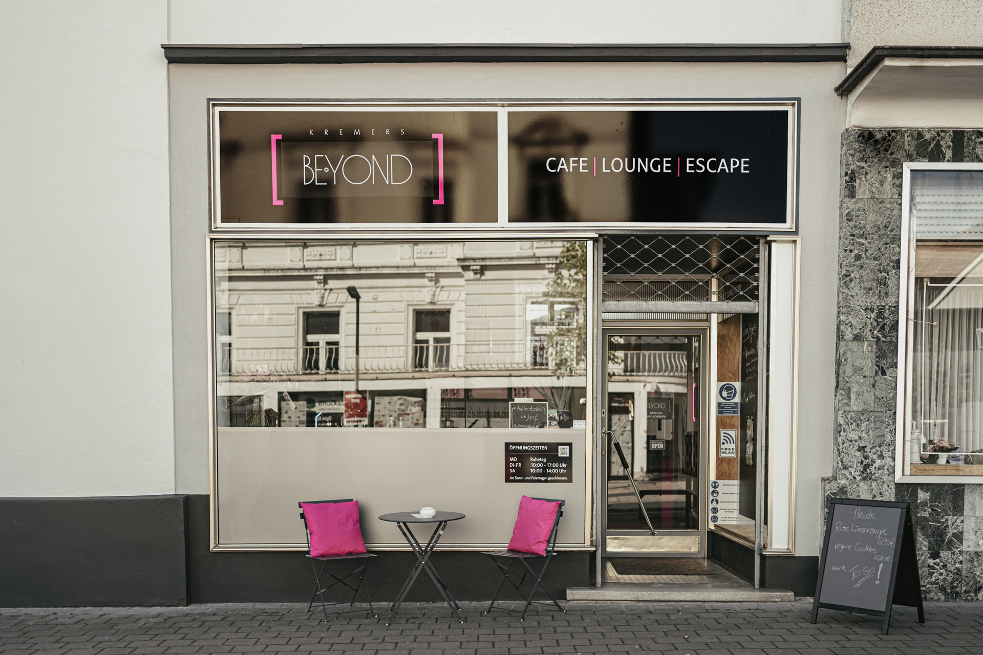 Dass am Brückenplatz etwas völlig Neuartiges entstehen sollte, stand fest; Charlotte, die gerade mitten im Studium der Wirtschaftspsychologie steckte, beschäftigte sich im Rahmen ihrer Bachelorarbeit mit der Markenbildung eines Startups im gastronomischen Umfeld, erarbeitete ein Konzept für das „Beyond“ – „darüber hinaus“, ein Name, der schon bald zum Programm, und eine Idee, die schon bald zur Wirklichkeit werden sollte.