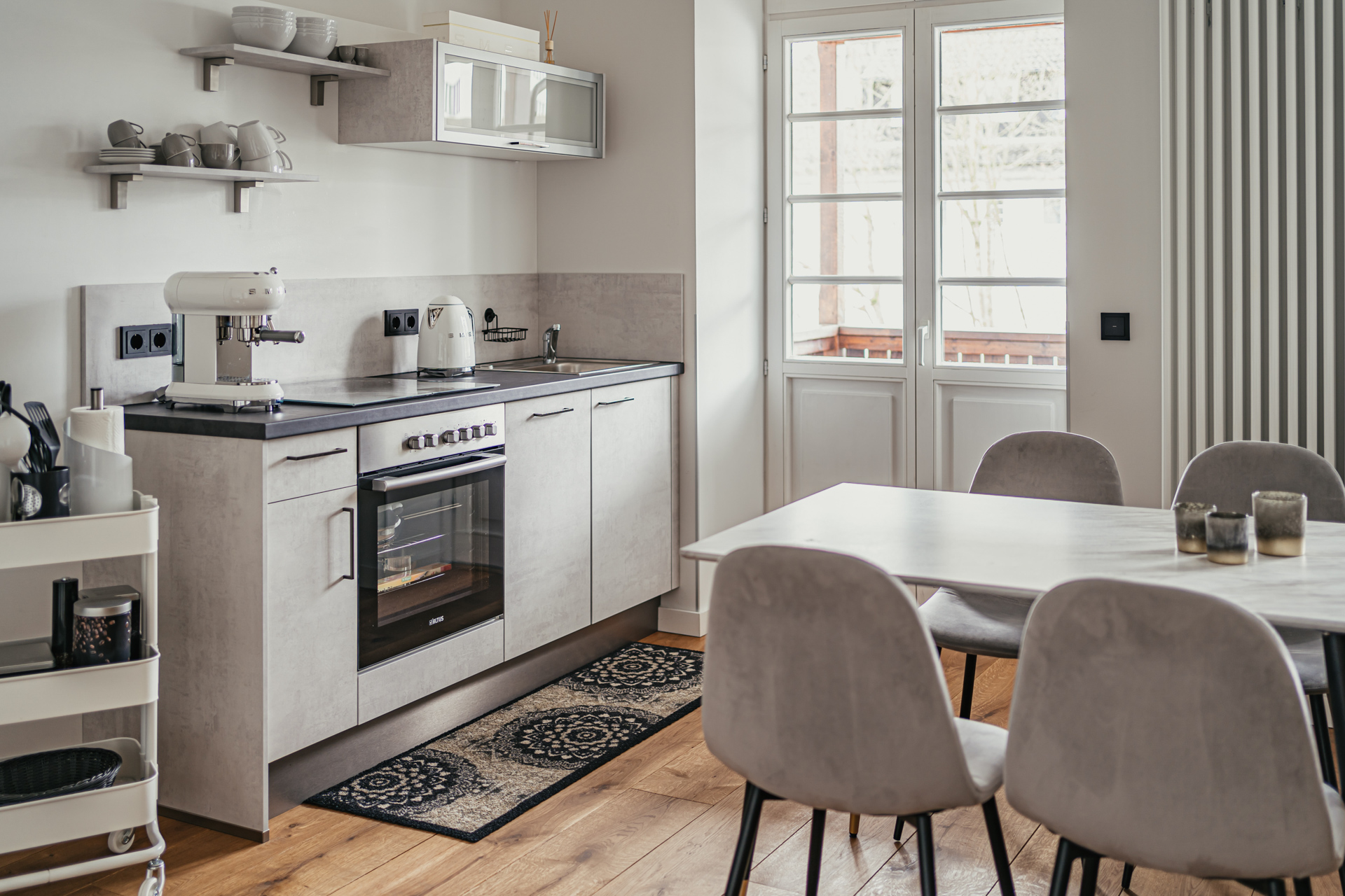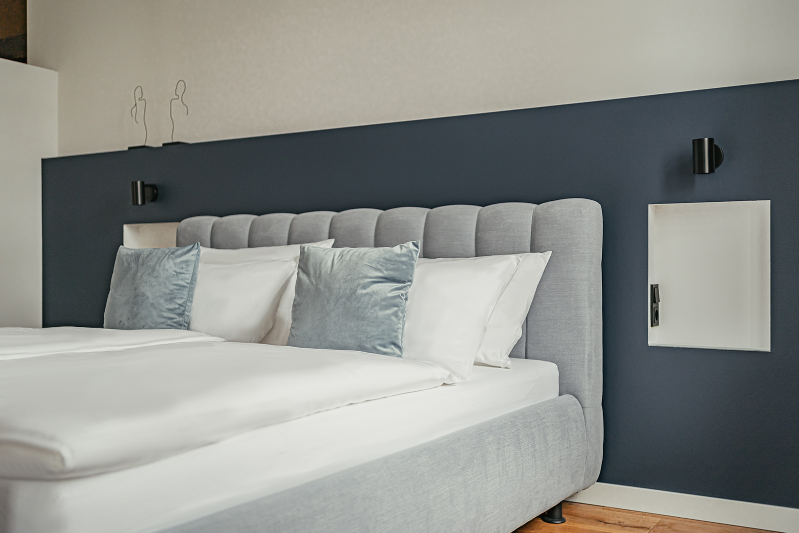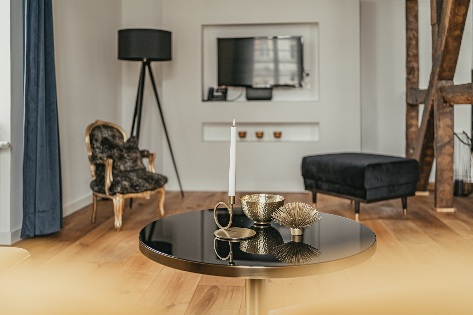 Im „Beyond“ hat Alexandra Heiland-Kremer ihrer Tochter völligen Freiraum bei der Gestaltung und Umsetzung des Konzepts gelassen, doch sie wollte auch selbst ihre „Freiräume“ haben – und das im wahrsten Sinne des Wortes! In den oberen Etagen befinden sich drei hochwertige Vier-Sterne-Ferienwohnungen, die eben diesen Namen haben; hier trägt alles Alexandras Handschrift, Klassizismus trifft Art déco…