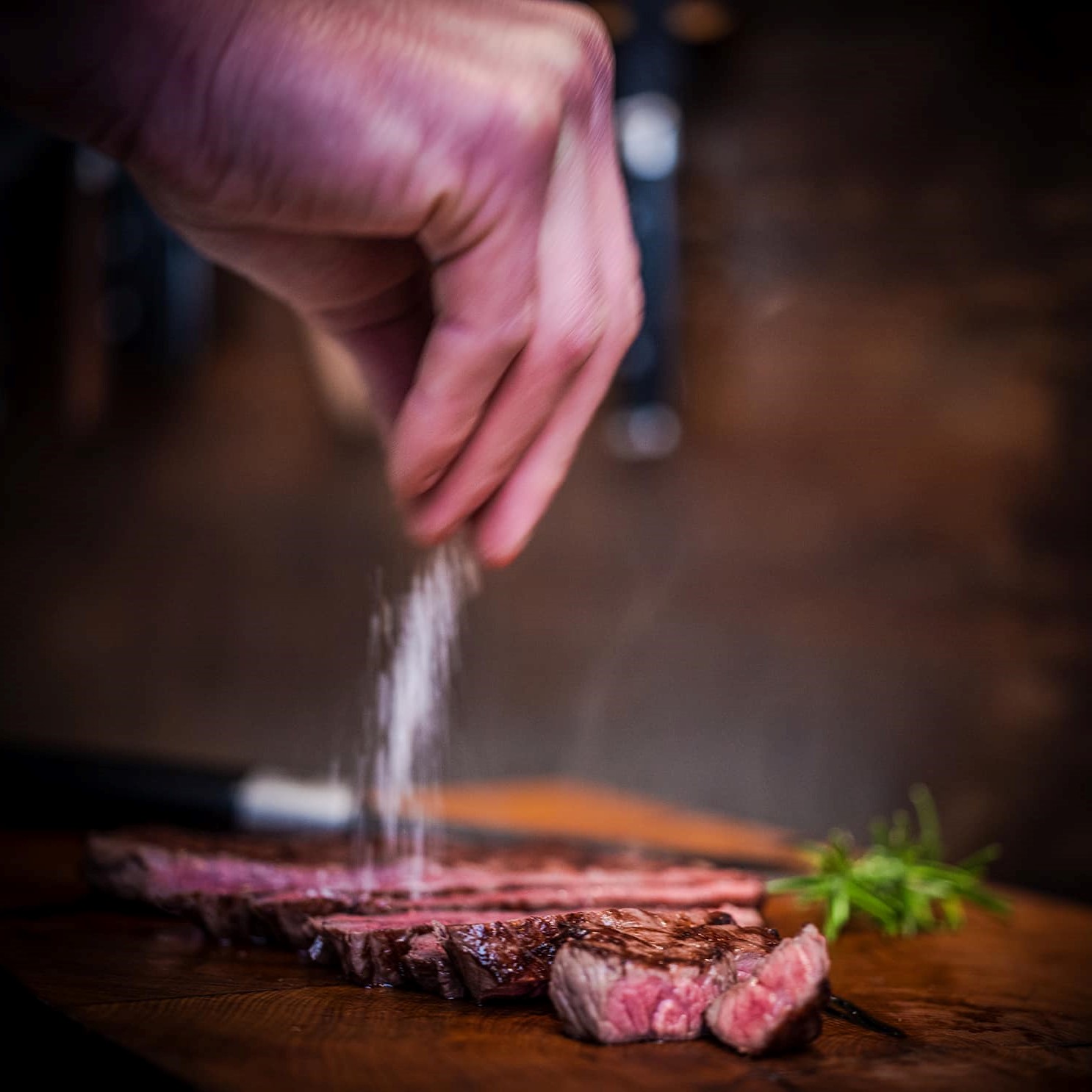 Wir empfehlen den Leuten, die hier neu sind, bei der Zubereitung nichts anders zu machen als gewohnt. Nur dann bekommt man den 1:1-Vergleich hin und weiß den Unterschied dann so richtig zu schätzen… Wenn man ganz vorsichtig ist oder tausend Sachen macht, die man vorher nicht gemacht hat, wird das nichts. Wobei man auch sagen muss: Ein gutes Stück Fleisch verzeiht sehr viel!
