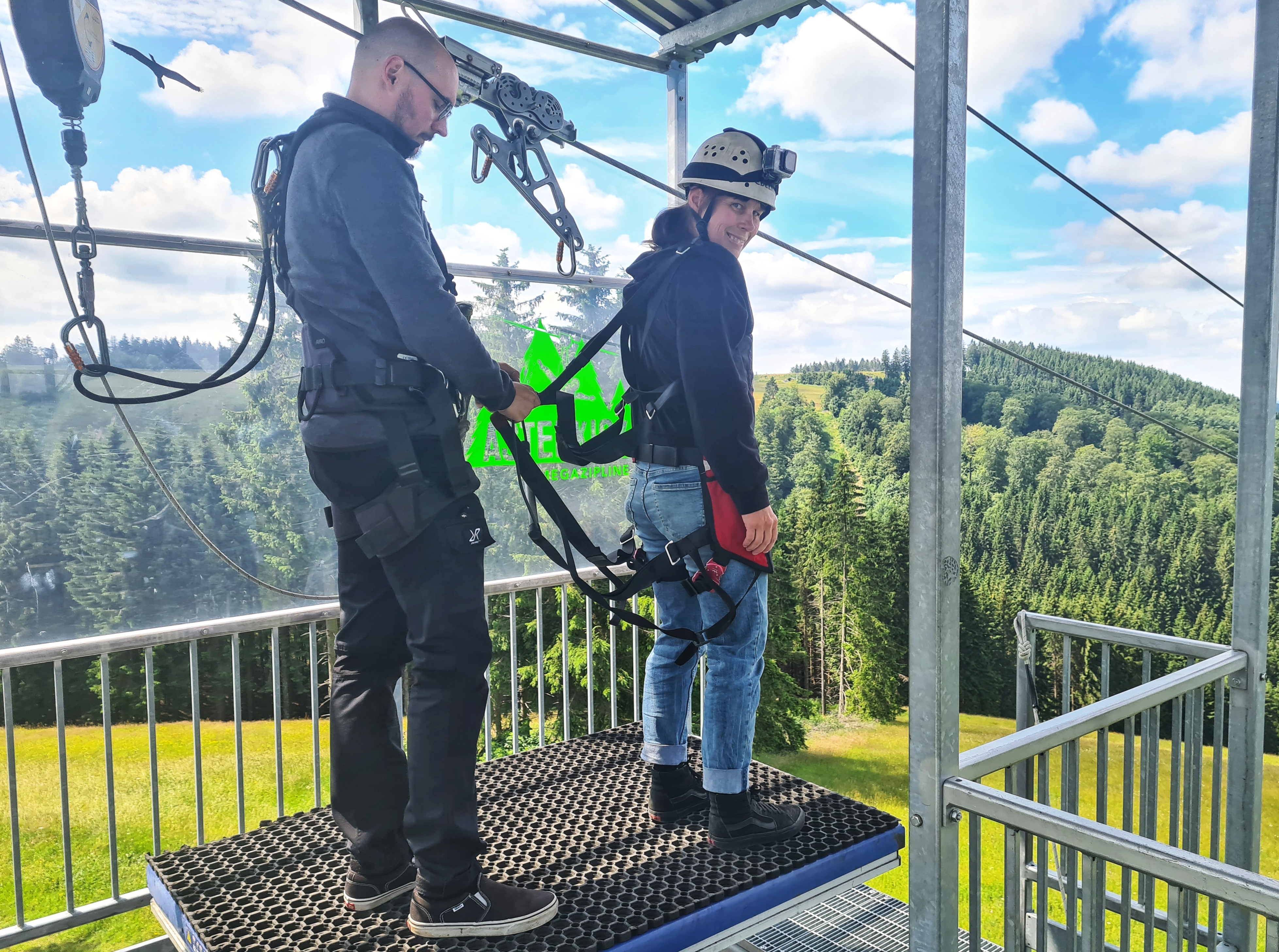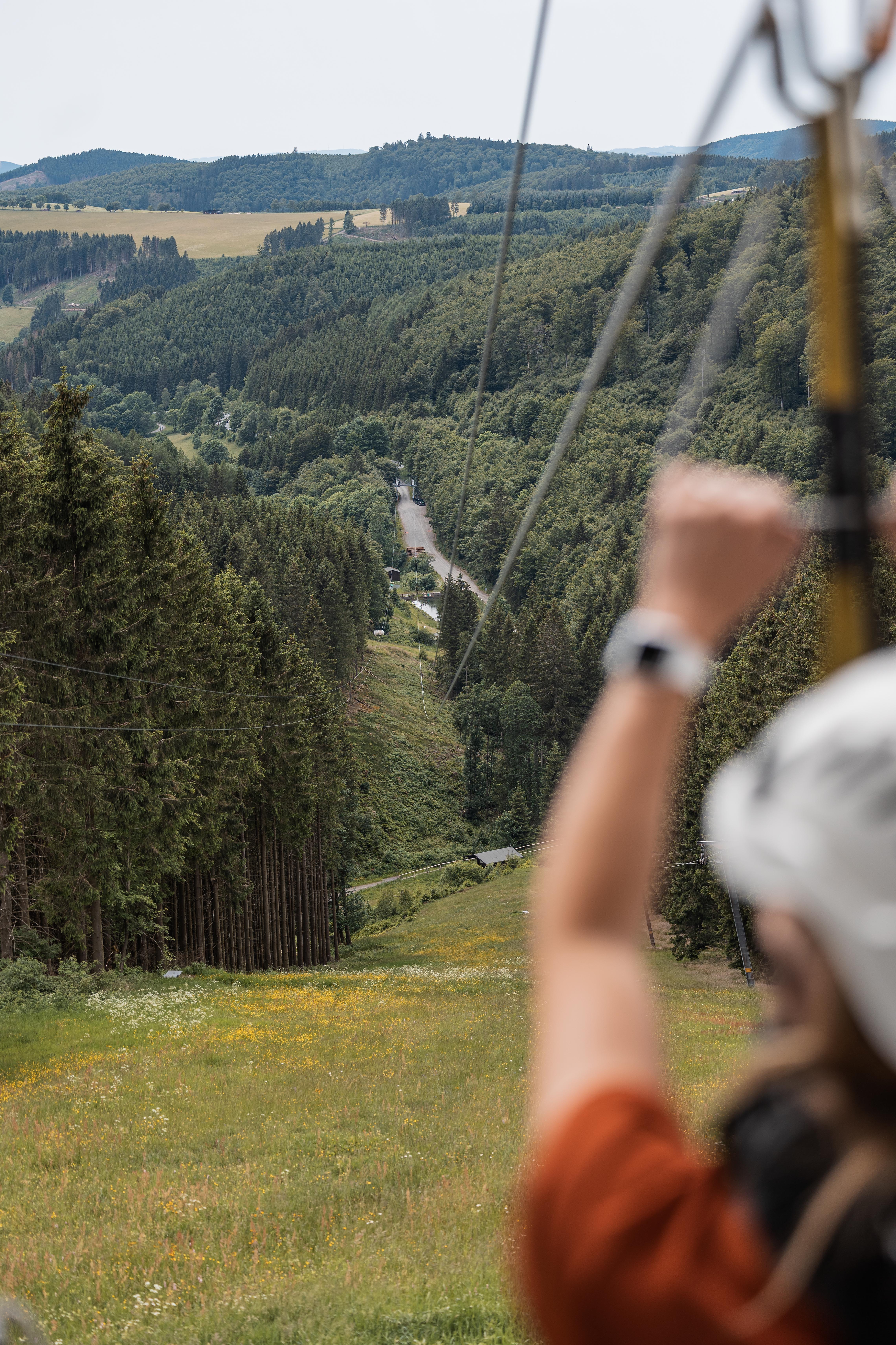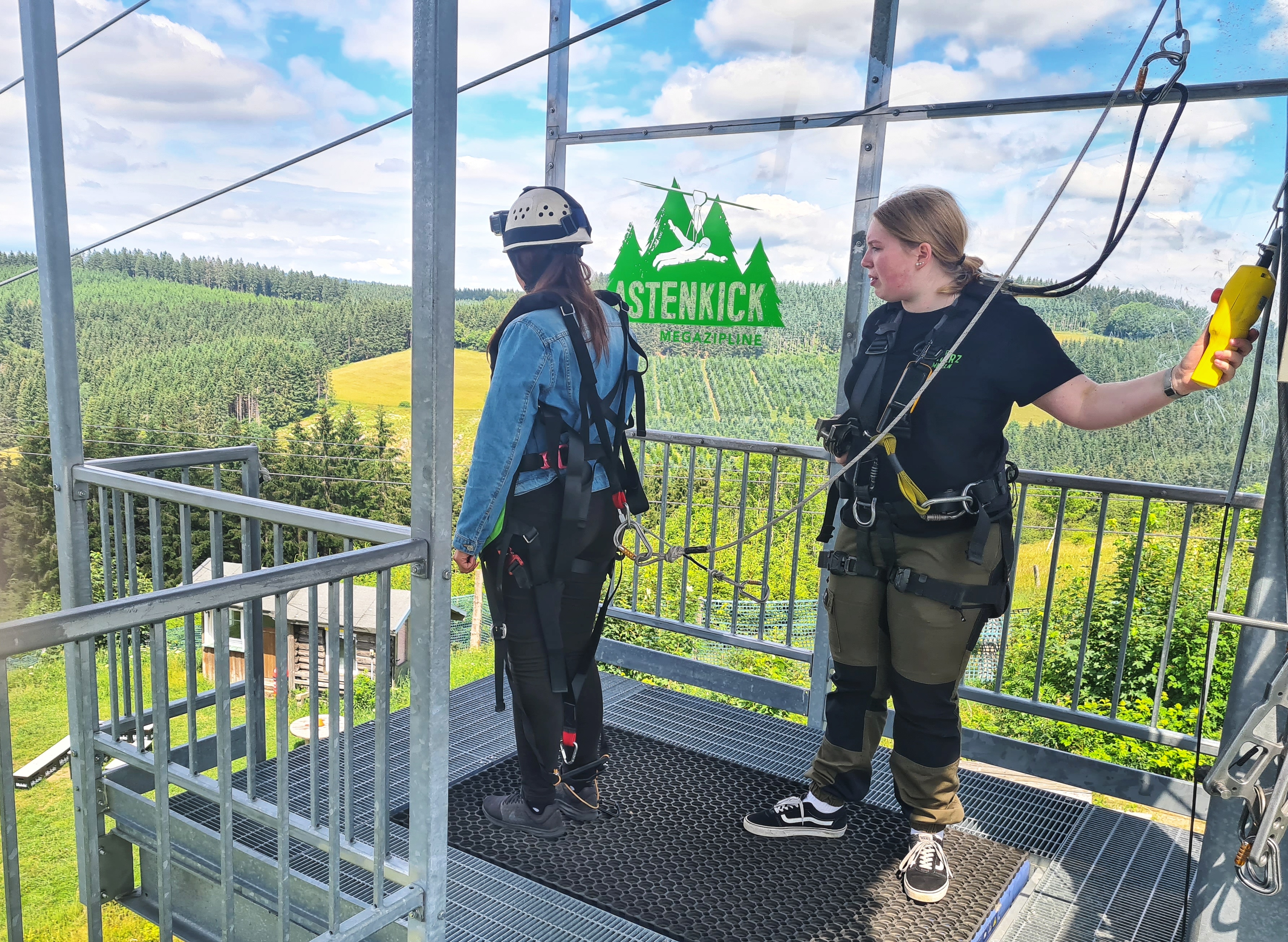 Nenn mich feige, aber ich habe es nicht getan… Nein, ich bin nicht mit siebzig Stundenkilometern an Europas zweitlängster Doppel-Megazipline Richtung Tal gesaust, nein, ich habe den Höhenrausch auf über eintausend Metern Flugstrecke nicht selbst erlebt! Und dennoch möchte ich dir natürlich nicht vorenthalten, was Sebastian Barnert und Christian Mienert auf die Beine gestellt haben, um für den ultimativen Adrenalin-Kick zu sorgen. Deswegen habe ich die „Astenkick Megazipline“ besucht, mich zumindest auf den Startturm gewagt und mit Menschen gesprochen, die sich gerade erst ins Abenteuer gestürzt hatten: