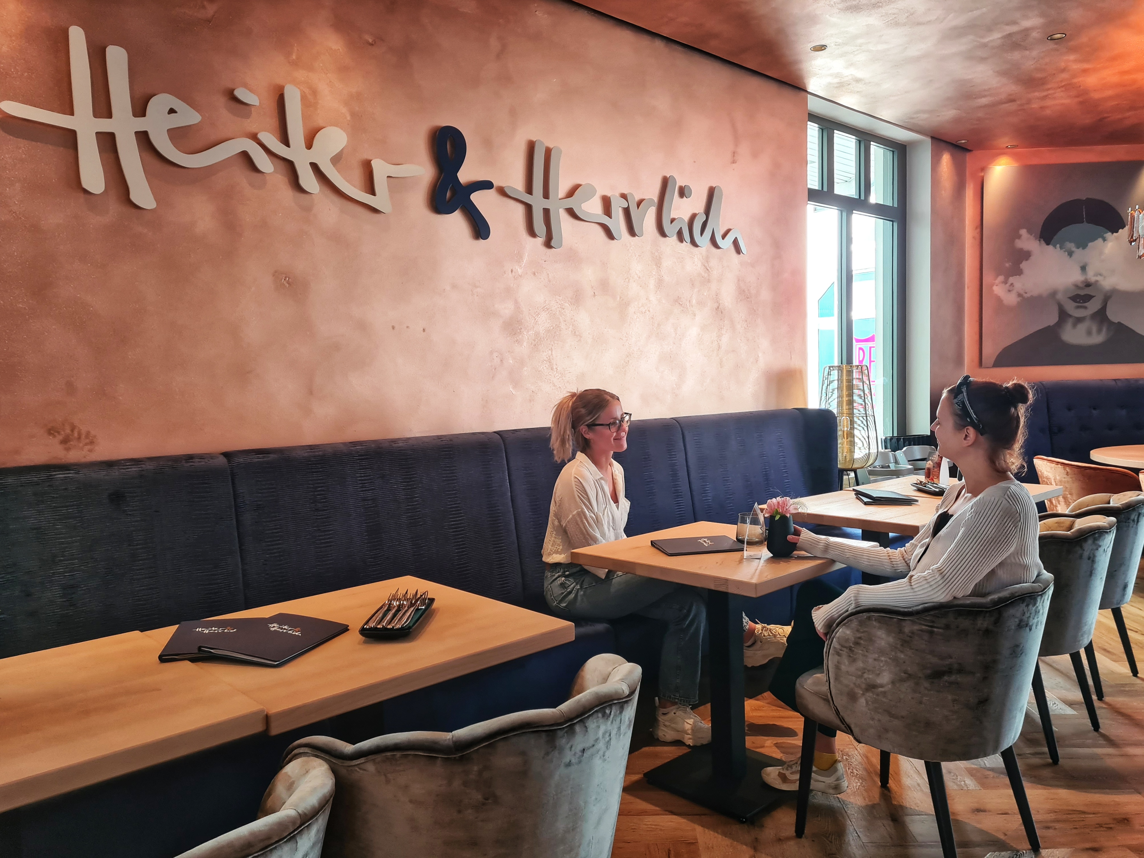 Herrlich vielfältig – nicht nur auf der Karte, sondern auch den Gästen gegenüber! Im „Heiter & Herrlich“ ist wirklich jeder willkommen, auf den Toilettenschildern liest du neben „weiblich“ und „männlich“ auch „divers“. Und genau so, wie ich dich hier auf meinem Blog konsequent duze, wirst du auch vom herrlichen Team ganz persönlich angesprochen – es sei denn, du widersprichst vehement und bestehst auf dem förmlichen „Sie“.