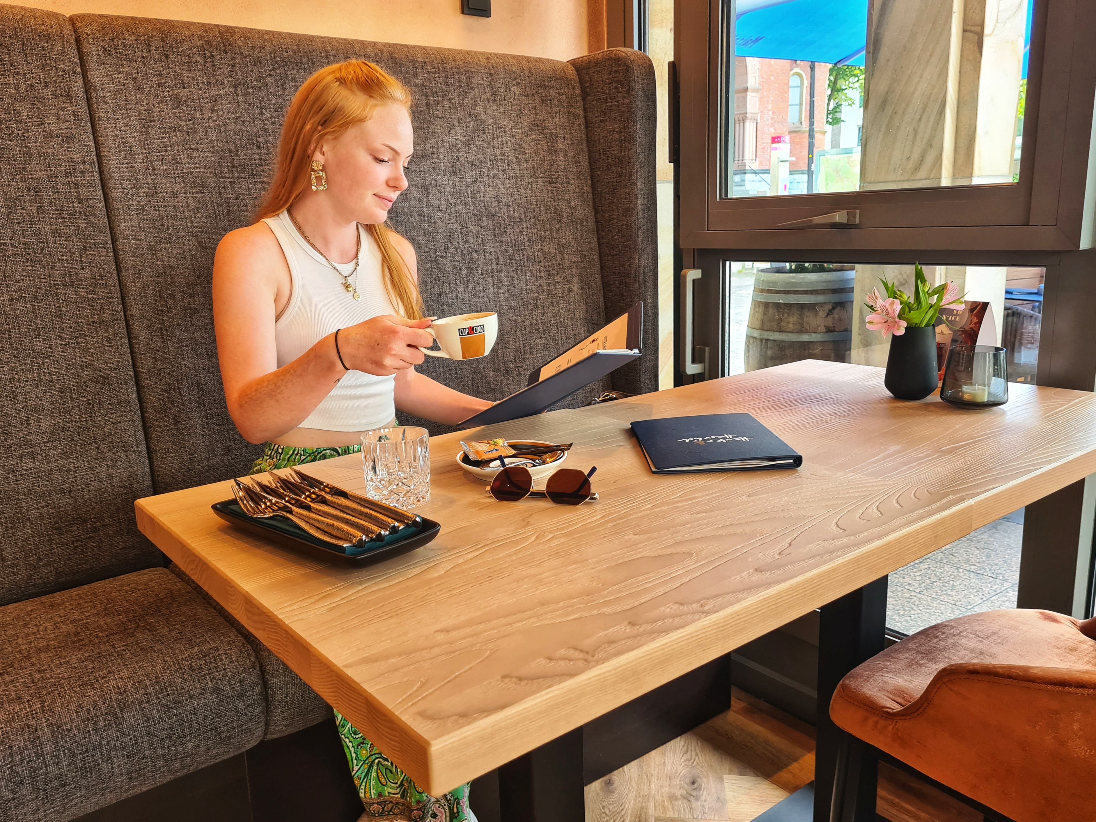 Auf diesen Moment, in dem du dich einfach auf die weichen Sessel fallen lässt, dich zurücklehnst und die Blicke genüsslich schweifen lässt, haben der Neheimer Sebastian Wanders und das Team der „Foodlover Group GmbH“ aus Schmallenberg lange hingearbeitet. Bereits im September haben sie die Location unmittelbar am Neheimer Markt übernommen, doch es hat über ein halbes Jahr gedauert, bis sie zur Eröffnung am 29. April mit dem Ambiente rund um die 82 Sitzplätze im Innen- und 72 im Außenbereich rundum zufrieden waren.