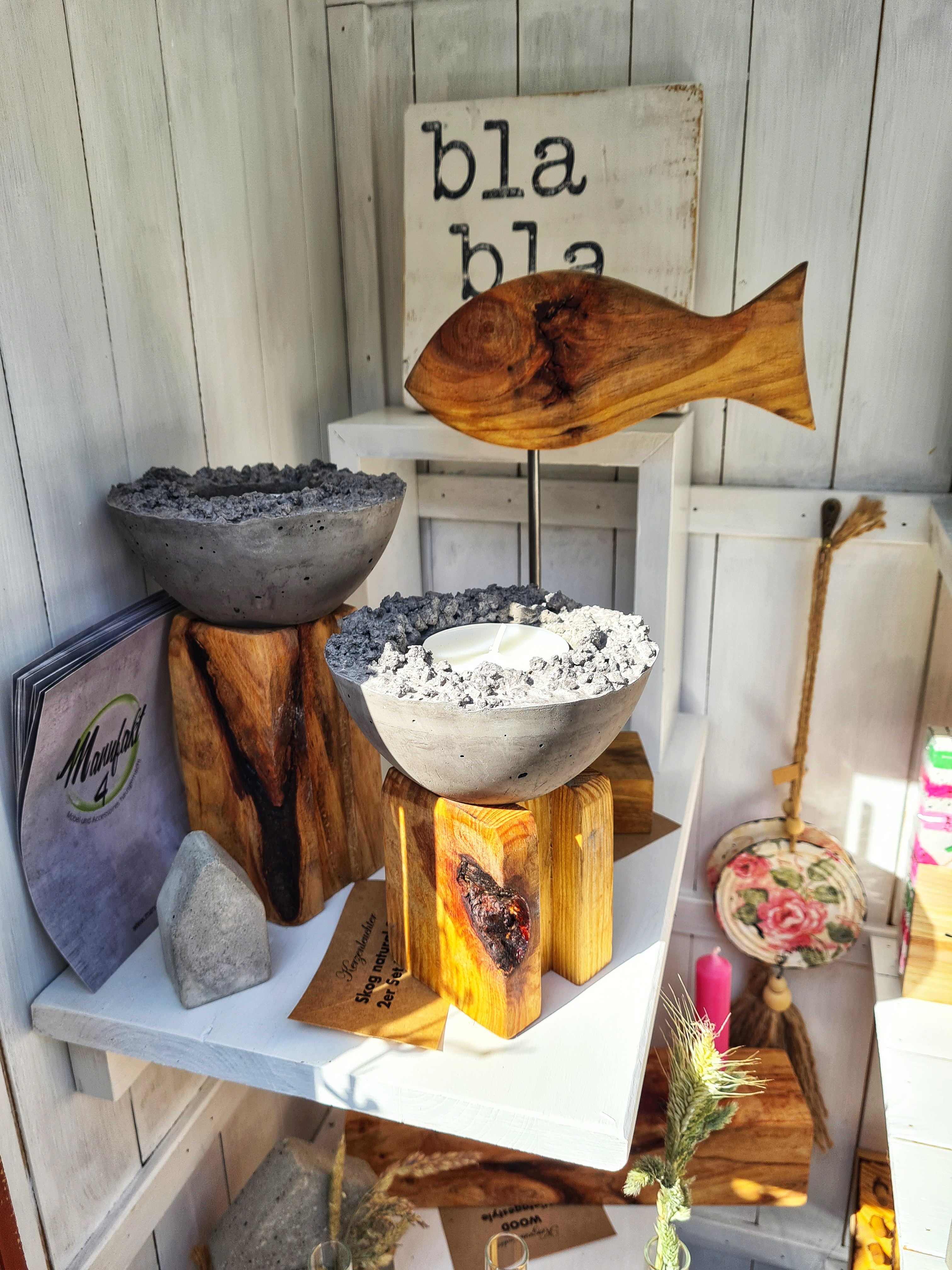 Christian ließ sich von dieser Begeisterung anstecken, schließlich wurde er nicht nur zum etwas mühseligen Anrühren des Betons, sondern auch zur gemeinsamen Gestaltung der „Midsommar“-Serie gebraucht: Schalen in unterschiedlichen Größen und Farben, die als Feuerschale oder Pflanztopf, Vogeltränke oder Kerzenleuchter vielseitig einsetzbar sind, wurden zum Klassiker bei „manufakt4“.