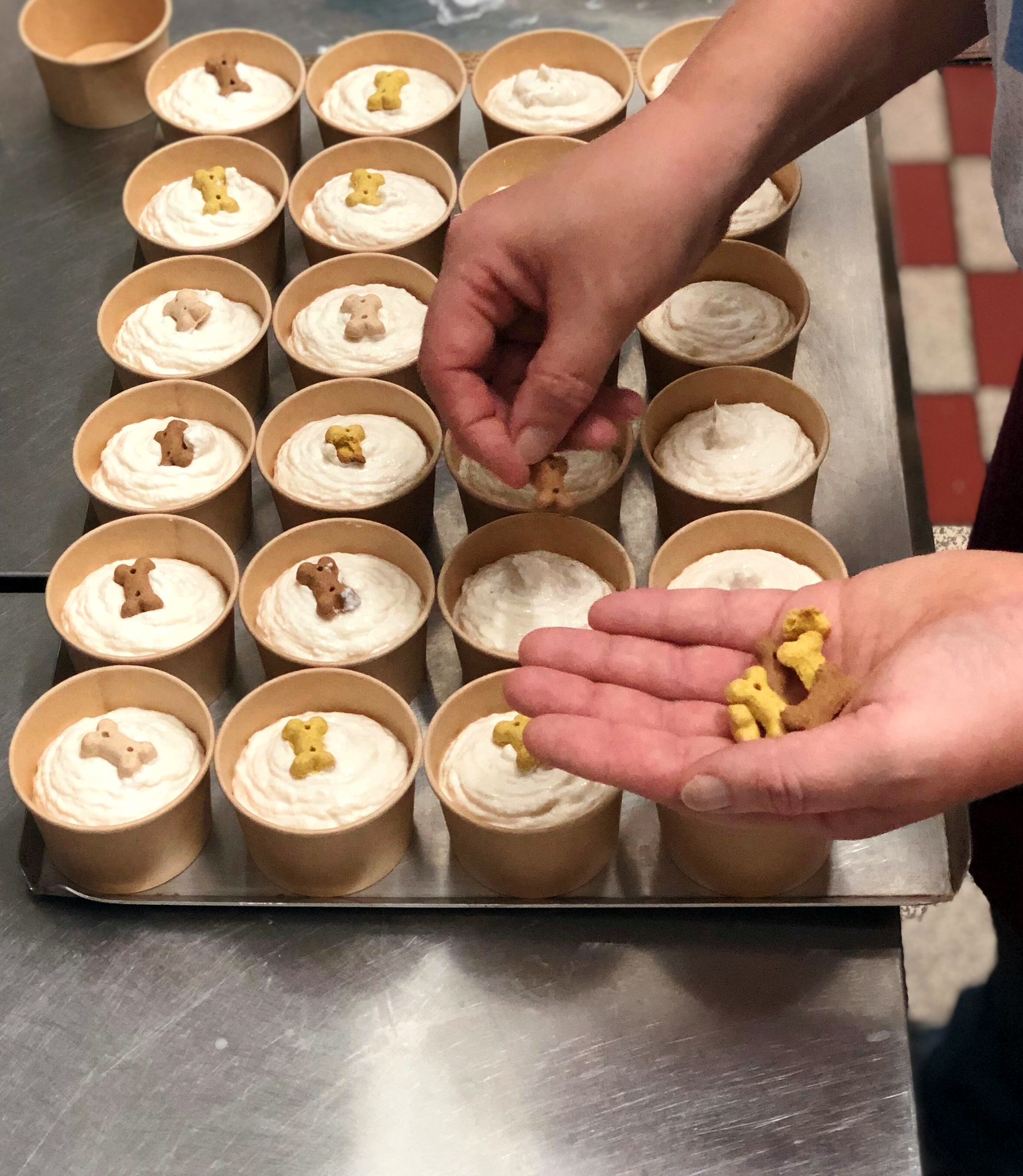 Hühnchen-Geschnetzeltes mit Hüttenkäse – auch so eine kreative Sorte, die Torsten sich einfallen lassen hat. Aber du ahnst bestimmt schon: Die ist nicht für dich gedacht, sondern für deinen vierbeinigen Freund! Ohne Salz und Zucker verträgt das Eis auch der empfindliche Hundemagen; auf nur minus zwei Grad gekühlt kannst du deine Fellnase direkt losschlecken lassen.