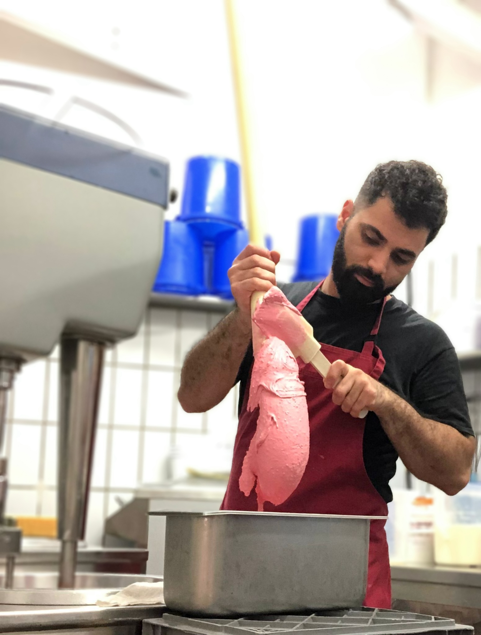 Doch Torsten ließ sich nicht entmutigen, kam in den Austausch mit seinen Kunden, entwickelte gemeinsam mit ihnen neue Ideen. So entstand zum Beispiel „Inkas Liebling“, weil Inka immer eine Kugel Vanille und eine Kugel Maracuja bestellte und diese dann miteinander verrührte… Nach wie vor ist Torsten dankbar für jedes Feedback – in seinem Team arbeiten inzwischen zwei weitere Konditoren und ein Bäcker, die gemeinsam mit ihm die aufwendigen Rezepturen entwickeln.
