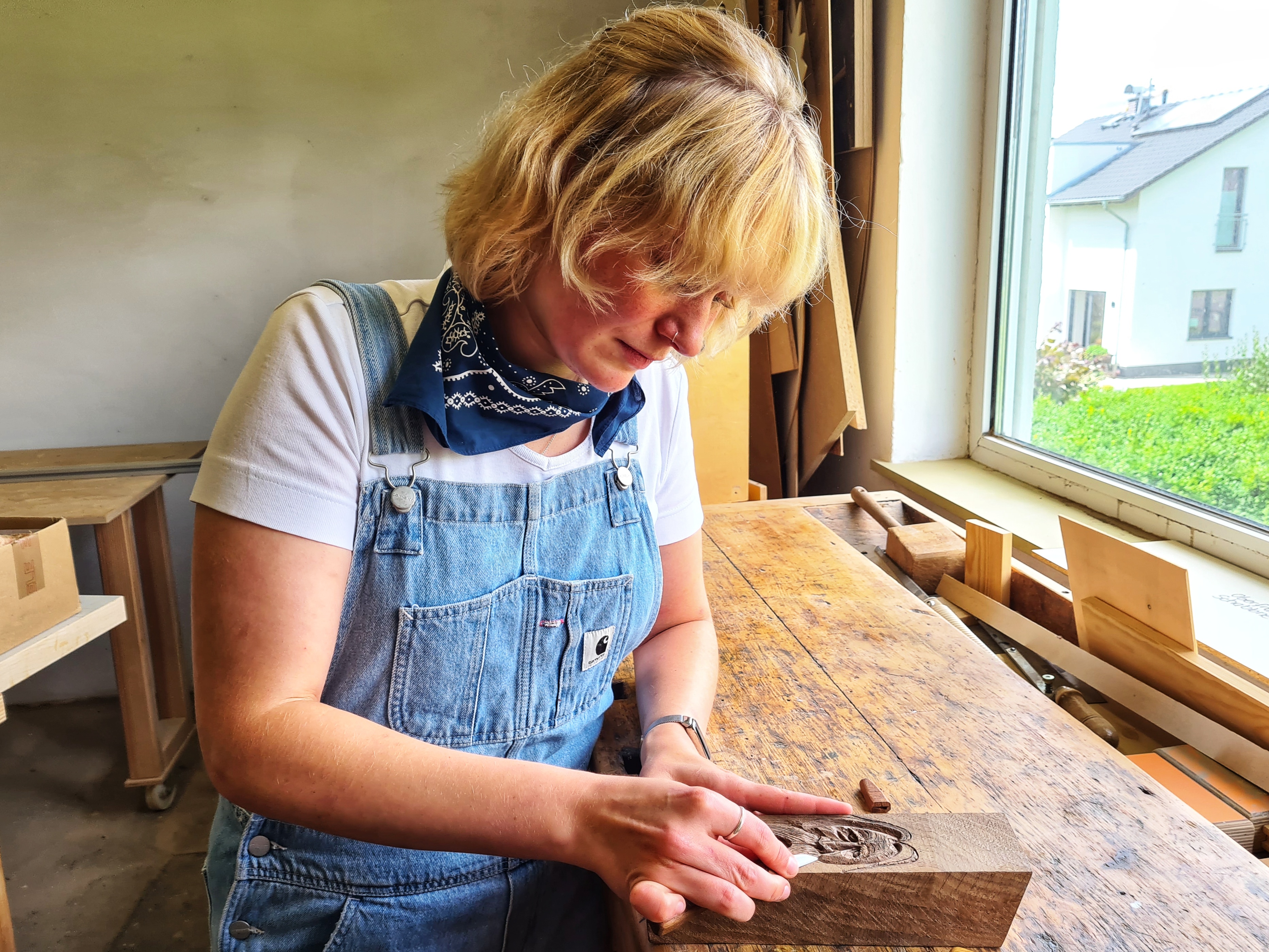 Zunächst startete sie in einem anderen Betrieb, in der „Tischlerei Beule“ fand sie dann aber genau das, was sie gesucht hatte: Einen Chef, der ihr viel zutraute und große Freiheiten in ihrer Entwicklung gab, ein professionelles Arbeitsumfeld, in dem sie sich so richtig austoben konnte, und eine Freundin. Die Tischlergesellin Karina Hoffmann teilt nämlich Madlens Leidenschaften, auch sie hat viel Freude daran, aus kleinen Ideen handwerkliche Projekte zu gestalten – gemeinsam sorgten Karina und Madlen in dem kleinen Betrieb für eine Frauenquote von fünfzig Prozent.
