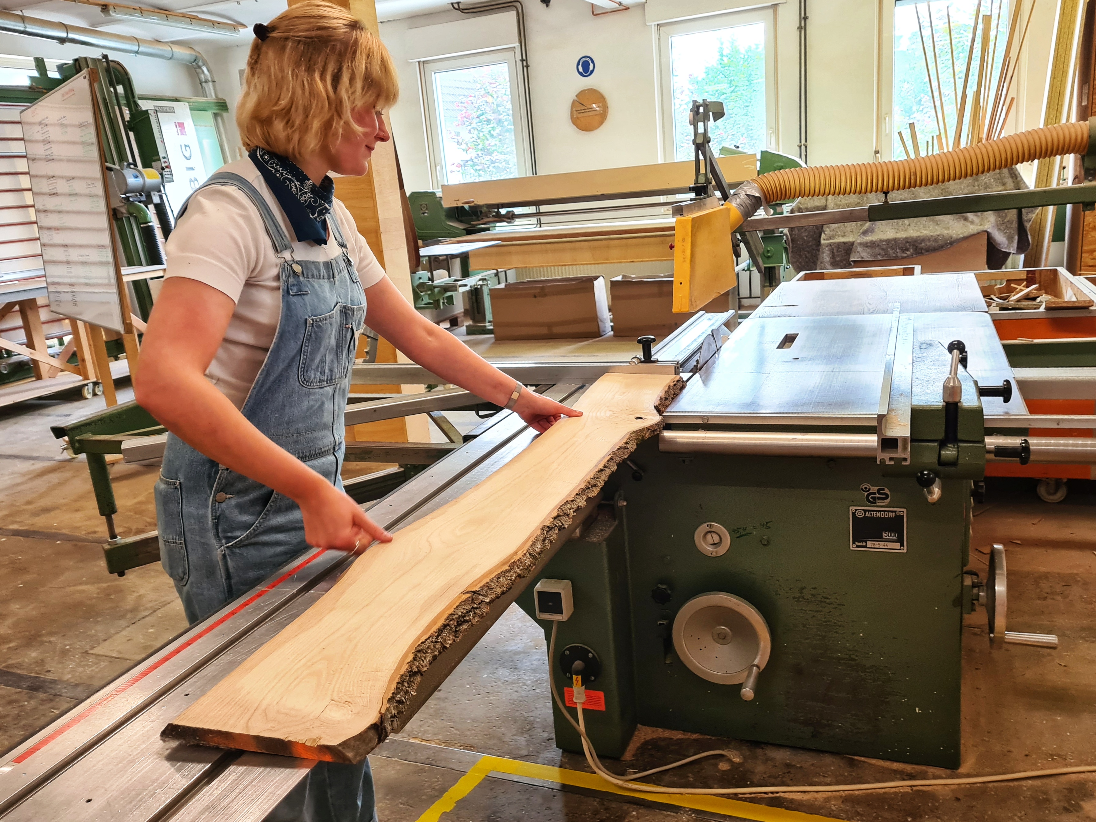 Die andere Leidenschaft gilt dem Holz; schon früh entdeckte sie, wie unglaublich vielfältig sich dieser lebendige Werkstoff nutzen ließ. Und so war völlig klar, dass es nach der Schule nicht direkt ins Studium, sondern in eine Ausbildung ging. Zimmerin oder Tischlerin – hättest du den Unterschied gekannt? Madlen hat ihn mir erklärt: Während Zimmerer auf den Zentimeter genau arbeiten und zum Beispiel Dachstühle fertigen, zählt für die Tischler, die sich um den gesamten Innenausbau kümmern, wirklich jeder Millimeter. Drei Mal darfst du raten, wofür sich Madlen entschieden hat? Okay, war mit einer Fifty-Fifty-Chance auch nicht ganz schwer, aber du hast natürlich Recht: Auch wenn Madlen keine Angst vor der Kreissäge und schwerem Gerät hat, liegt ihr das Filigrane doch mehr – also hat sie in den letzten drei Jahren eine Ausbildung zur Tischlerin gemacht!
