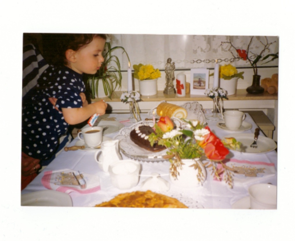 Stimmt, in Westernbödefeld gibt´s tatsächlich keine Bäckerei. Ich bin durch meine Oma und meine Mama zum Backen gekommen. Bei Oma gab´s sonntags Kuchen, der so lecker geduftet und so gut geschmeckt hat – welches Kind kann da schon widerstehen!? Zum Geburtstag durften wir immer kleine Nusstörtchen mit in die Schule nehmen, natürlich haben wir auch fleißig beim Backen mitgeholfen. Und irgendwann durfte ich es dann auch allein versuchen…
